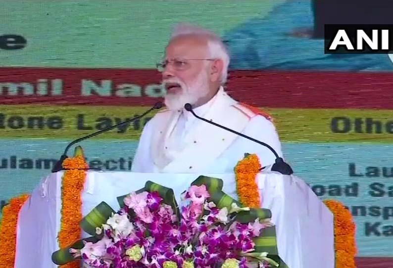 ரூ.40 ஆயிரம் கோடி ரூபாய் மதிப்புள்ள பல்வேறு திட்டங்களை தொடங்கி வைப்பதற்காக பிரதமர் நரேந்திரமோடி இன்று கன்னியாகுமரி மாவட்டம் வந்தார். இதற்கான விழா அகஸ்தீஸ்வரம் விவேகானந்தா கல்லூரி வளாகத்தில் நடைபெற்றது. இந்த விழாவில் முதல்-அமைச்சர் எடப்பாடி பழனிசாமி மற்றும் துணை முதல்-அமைச்சர் ஓ.பன்னீர்செல்வம் ஆகியோரும் பங்கேற்றனர்..