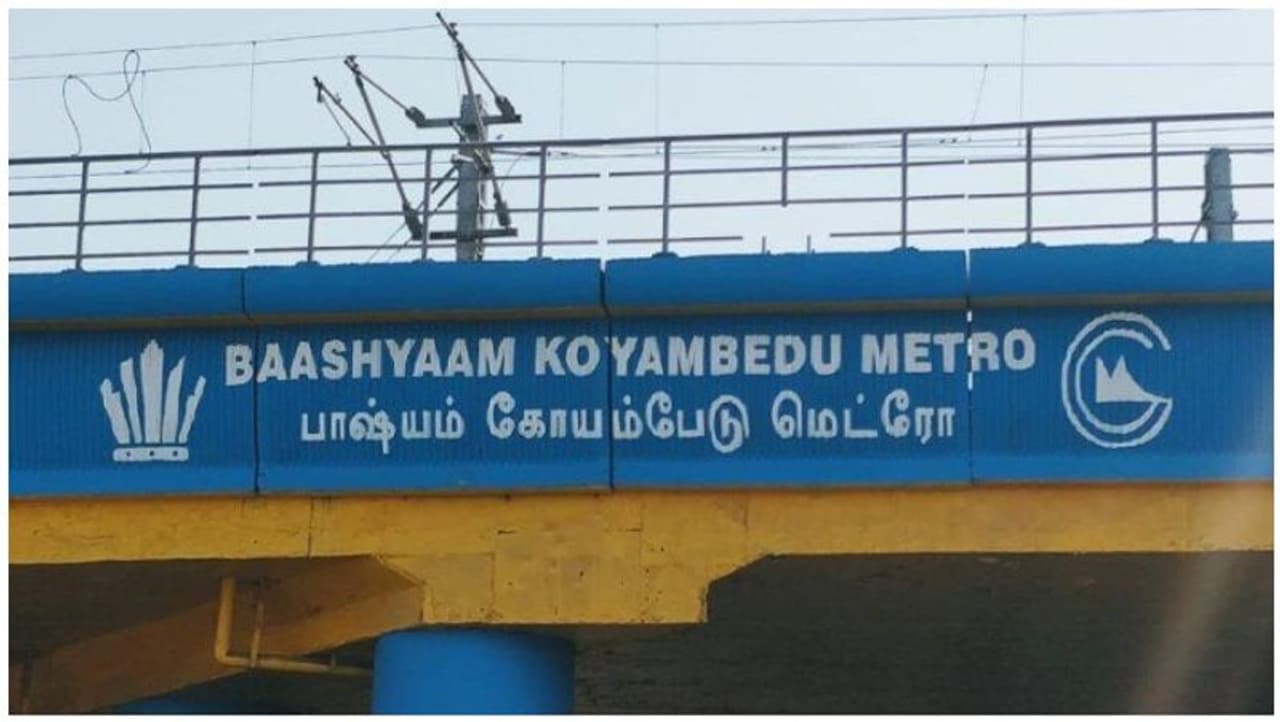 அதிமுக ஆட்சியில், கடந்த ஜனவரி மாதம், 3ம் தேதி இரவோடு இரவாக கோயம்பேடு மெட்ரோ ரயில் நிலையத்தின் மேம்பாலங்களில் ’பாஷ்யம் கோயம்பேடு மெட்ரோ’என பெயர் மாற்றப்பட்டு எழுதப்பட்டிருந்தது பெரும் சர்ச்சைகளை ஏற்படுத்தியது. அப்போது பல்வேறு கேள்விகளையும் எழுப்பியது. கோயம்பேடு மெட்ரோ ரயில் நிலைய மேம்பாலங்களில் இந்த பெயர் திடீரென வைக்கப்பட்டதற்கு காராணம் என்ன என்பது குறித்து விளக்கம் அளிக்குமாறு அரசியல் கட்சிகள் மெட்ரோ ரயில் நிர்வாகத்திற்கு கடிதம் மூலம் கேட்டுக்கொண்டன. மதிமுக தலைவர் வைகோ உள்ளிட்ட பல்வேறு தலைவர்களும் கடும் கண்டனம் தெரிவித்தனர்.