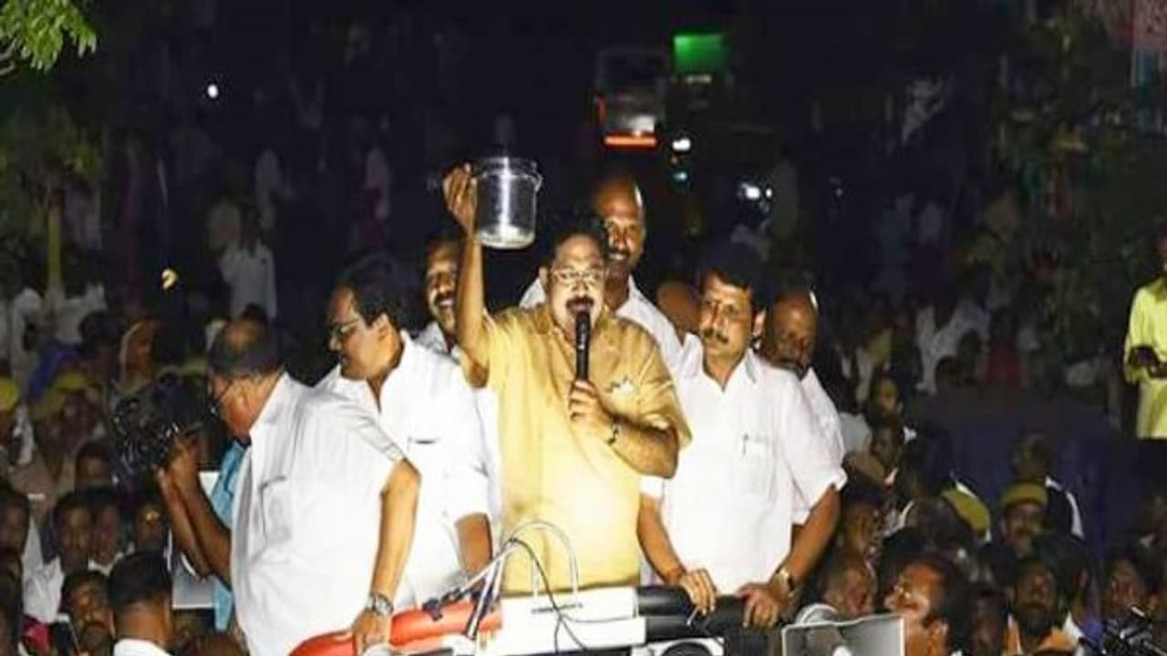 dinakaran asking support for pressure cooker in rk nagar and accusing tn government