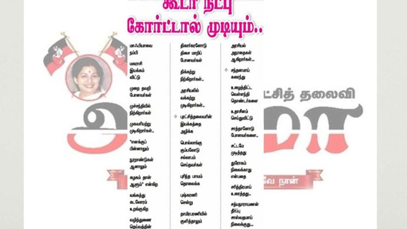 அதிமுகவின் அதிகாரப்பூர்வ நாளிதழான நமது அம்மாவில், கவிதை ஒன்று இடம் பெற்றுள்ளது. அதில், கூடா நட்பு கோர்ட்டில் முடியும் என்ற தலைப்பில் வெளியாகி உள்ளது.