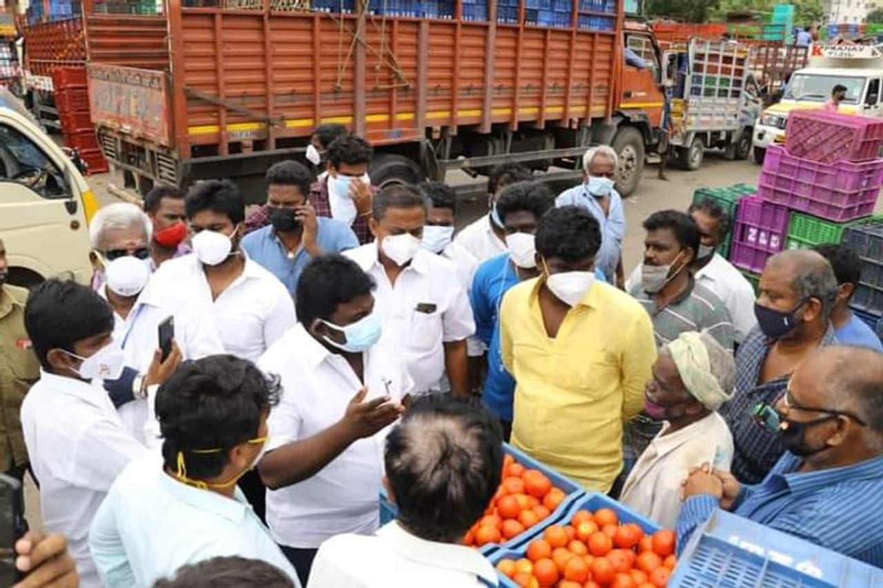 முககவசம் முறையாக அணியாமல் சென்னை கோயம்பேடு மார்க்கெட்டில் பணிபுரியும் தொழிலாலிகளால் கொரனா தொற்று பரவும் அபாயம் ஏற்பட்டுள்ளது. தமிழக அரசால் வணிகர் சங்கங்களுடன் இணைந்து நேரடியாக இல்லங்களுக்கு காய்கறிகளை விநியோகம் செய்யும் பணியை பொதுமக்கள் அறிந்து பயன் படுத்திக்கொள்ள வேண்டும் என்று மொத்தவிலை காய்கறி வியாபாரிகள் நலச்சங்க தலைவர் முத்துக்குமார் கேட்டுக் கொண்டுள்ளார்.