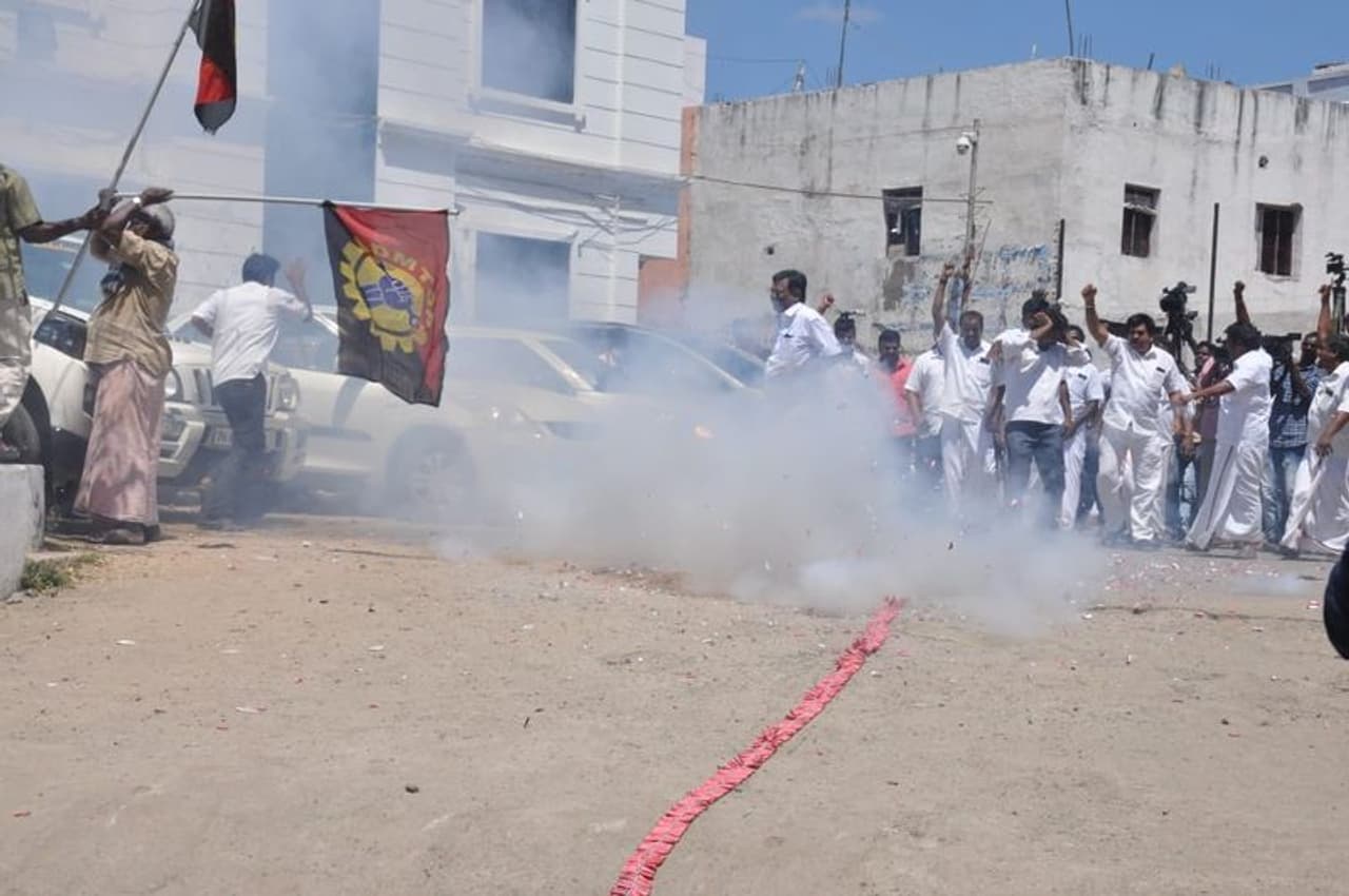 மாவட்ட செயலாளர்கள் கூட்டத்திற்கு பிறகு செய்தியாளர்களை சந்தித்த எல்.கே.சுதீஷ், கேட்ட தொகுதிகளை ஒதுக்கீடு செய்தாததால் அதிமுக கூட்டணியில் இருந்து விலகுவதாகவும், இன்று தான் தேமுதிகவினருக்கு தீபாவளி என்றும் ஆவேசத்துடன் கூறினார். அதிமுக கூட்டணியில் இருந்து விலகிய தேமுதிக தனித்து போட்டியிடும் என நம்பி அக்கட்சியினர் கொண்டாட்டத்தில் இறங்கியுள்ளனர். கட்சி அலுவலகம் முன்பு பட்டாசு வெடித்தும், முழங்கங்களை எழுப்பியும் தேமுதிகவினர் கொண்டாட்டத்தில் ஈடுபட்டனர்.