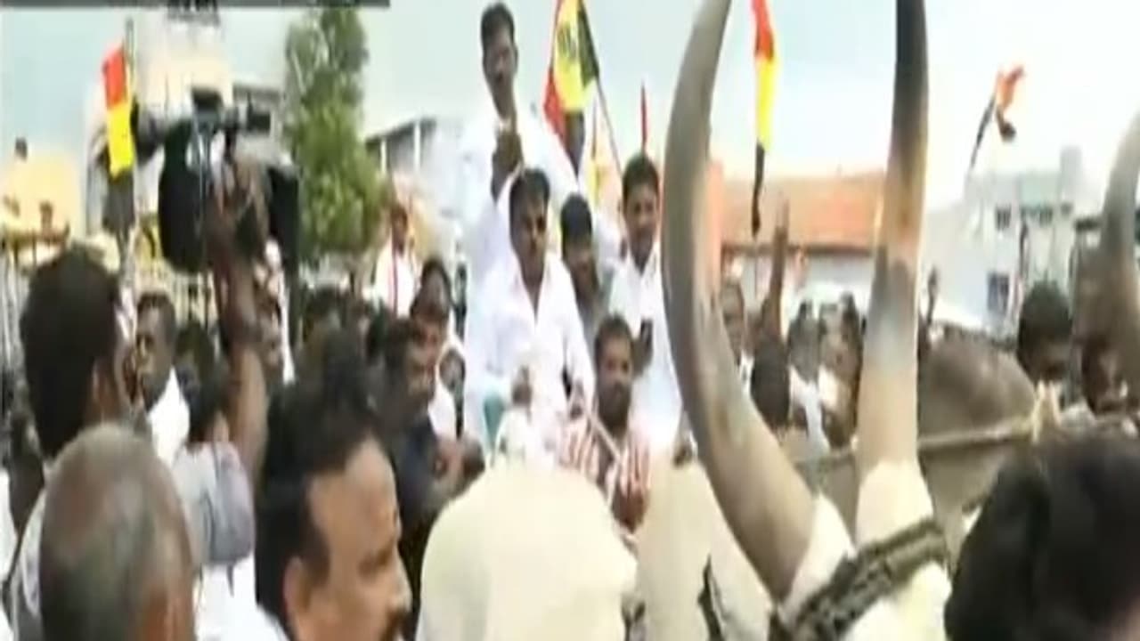 ஆர்ப்பாட்டத்தின்போது, ஏரிப்பாளையத்தில் இருந்து உடுமலைக்கு விஜயகாந்த் மாட்டுவண்டியில் பயணித்து அனைவரையும் ஆச்சரியப்படுத்தினார்.