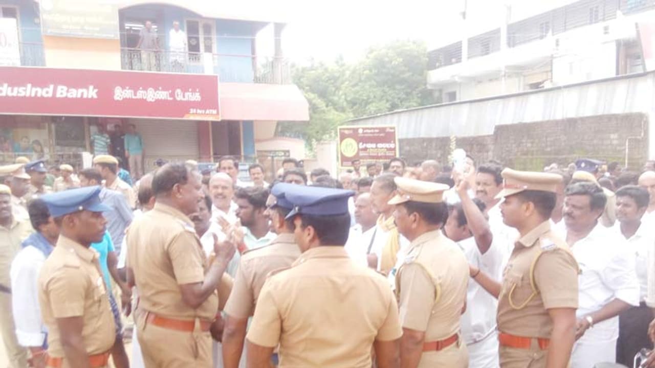 இதனால்பரபரப்புஏற்பட்டது. இதையடுத்துஅங்குபாதுகாப்புபணியில்ஈடுபட்டிருந்தபோலீசார்இருதரப்பினரையும்சமாதானம்செய்தனர்.