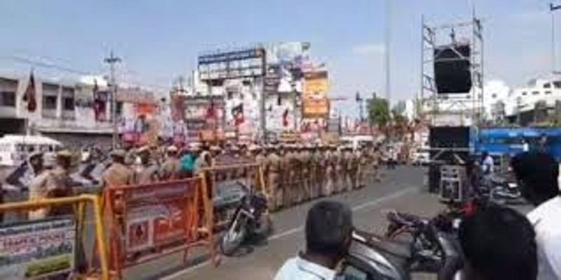 இதைத்தொடர்ந்து கரூர் மனோகரா கார்னர் ரவுன்டானா பஸ் நிலைய நுழைவு வாயில் மற்றும் கோவை ரோடு ஆகிய இடங்களில் துணை ராணுவ படையினர் துப்பாக்கியுடன் பாதுகாப்பு பணியில் ஈடுபட்டனர்.