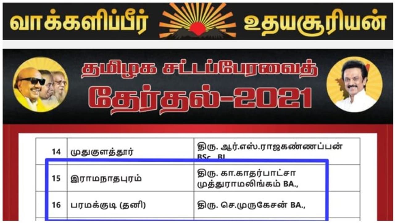 அதாவது முத்துராமலிங்கம் என்கிற காதர் பாட்சாவும், பரமக்குடி தொகுதி திமுக வேட்பாளர் முருகேசனும் தாங்கள் பி.ஏ பட்டப்படிப்பு படித்துள்ளதாக தலைமையிடம் தகவல் தெரிவித்துள்ளனர். அதனை நம்பி தங்களது அறிவிக்கிகையிலும் திமுக தலைமை இருவரையும் வேட்பாளராக அறிமுகப்படுத்தி அவர்கள் பெயர் அருகில் பி.ஏ., பாட்டாதாரிகளாக அறிவித்துள்ளது.