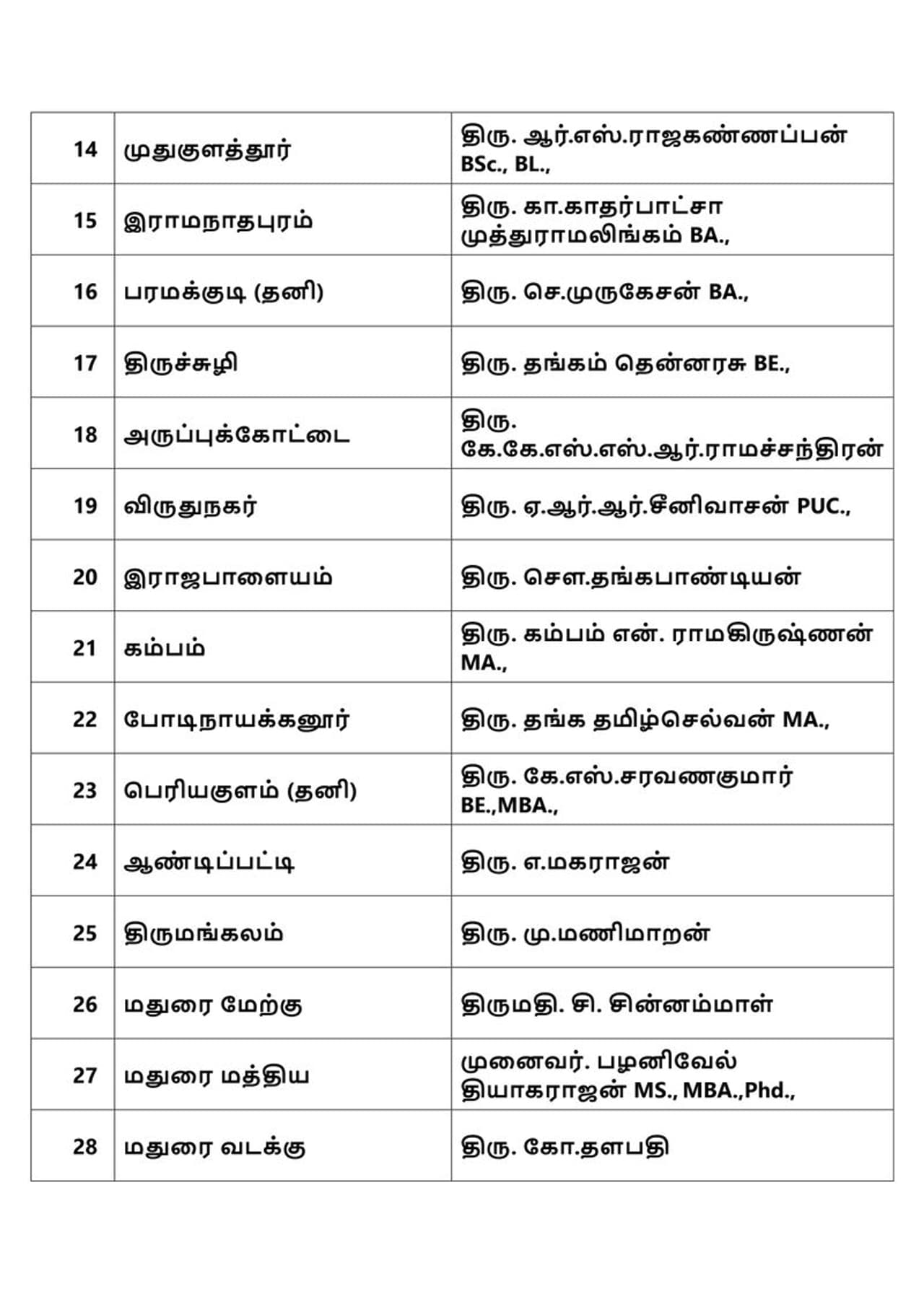 சட்டப்பேரவை தேர்தலில் போட்டியிடும் திமுக வேட்பாளர் பட்டியலை அக்கட்சியின் தலைவர் மு.க.ஸ்டாலின் வெளியிட்டுள்ளார். இதில், மு.க.ஸ்டாலின் கொளத்தூரிலும், உதயநிதி ஸ்டாலின் திருவல்லிக்கேணி- சேப்பாக்கம் தொகுதியில் போட்டியிடுகின்றனர்.