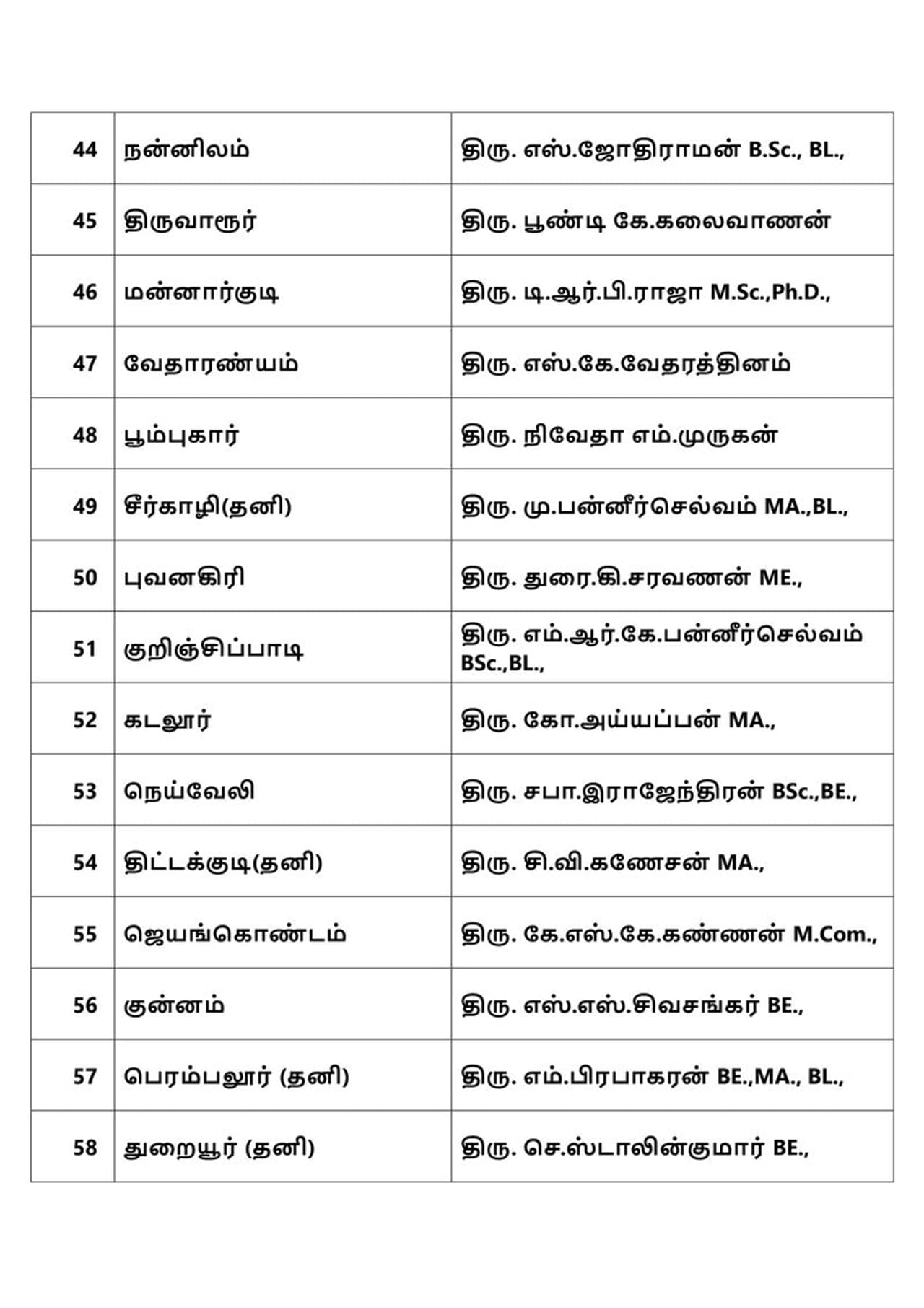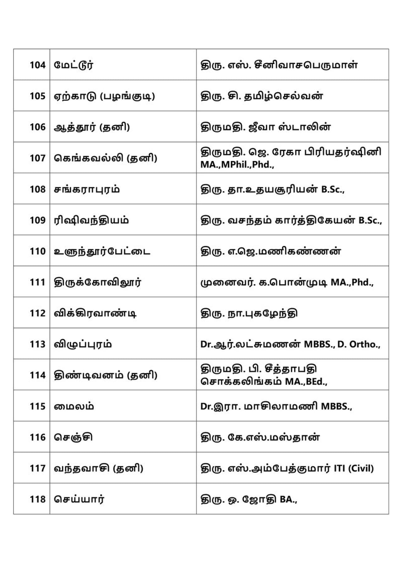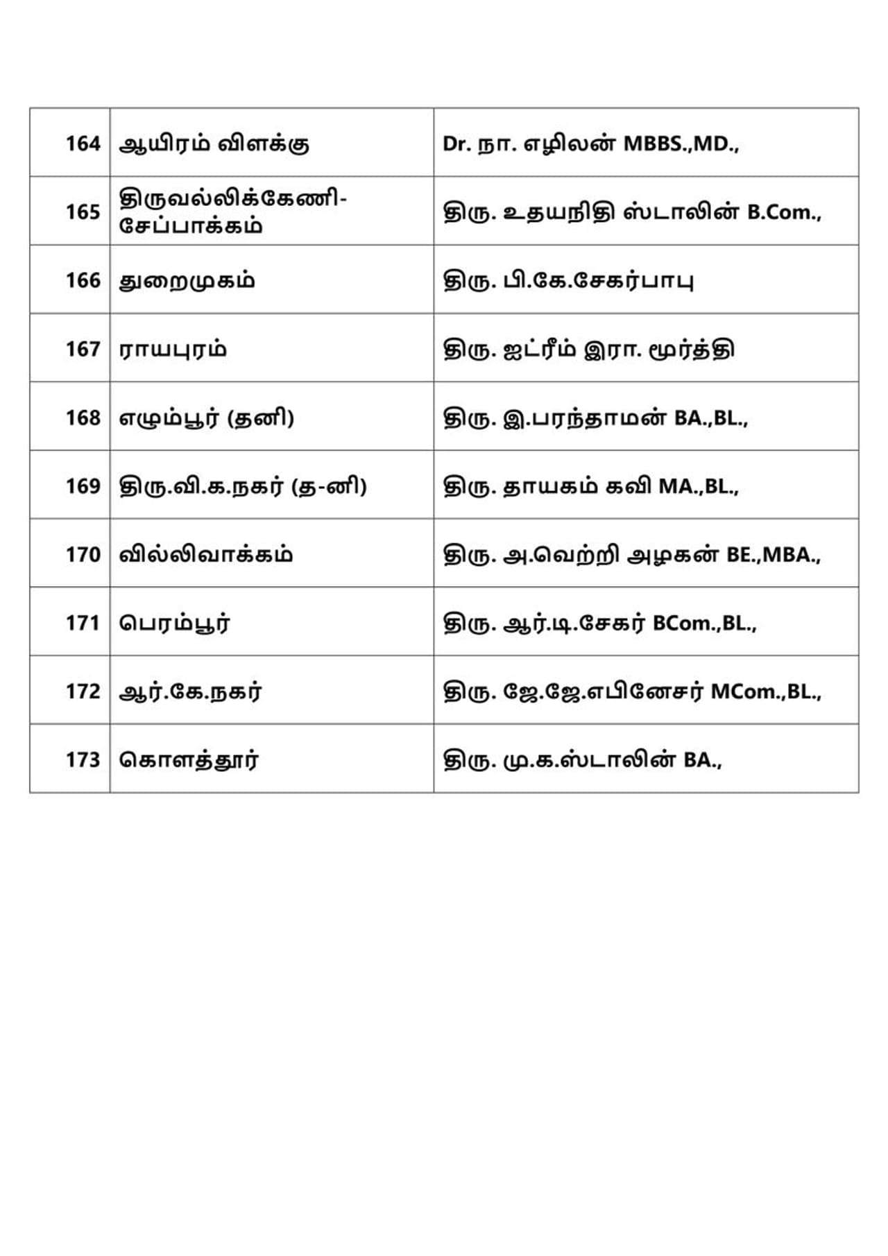 தி.மு.க. போட்டியிடும் 173 தொகுதிகள் விவரம் வெளியீடு