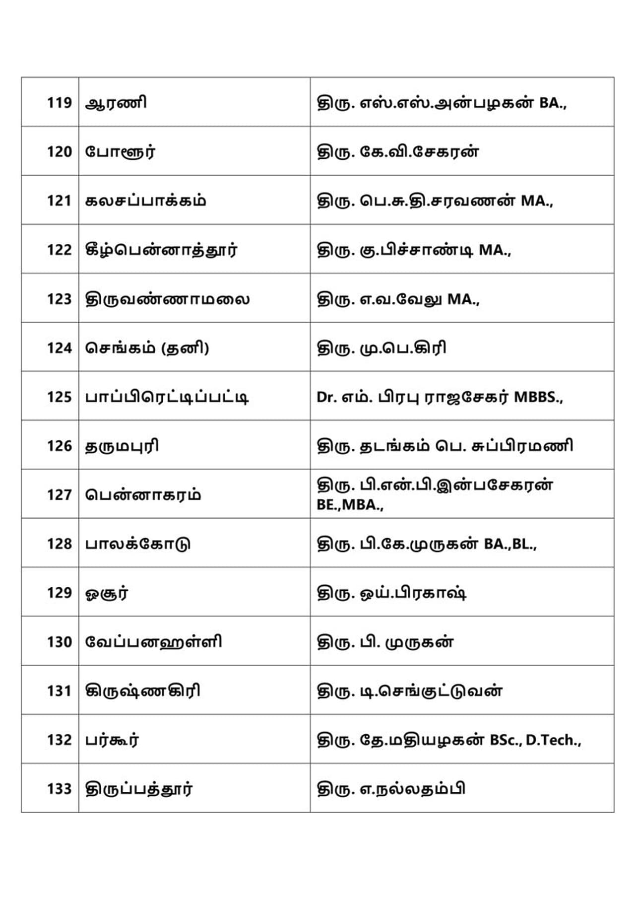 அதேபோல், தமிழக வாழ்வுரிமைக் கட்சி, ஆதித்தமிழர் பேரவை, மக்கள் விடுதலை கட்சிக்கு ஒரு தொகுதியும் திமுக கூட்டணியில் ஒதுக்கப்பட்டன. இந்த வகையில் 61 தொகுதிகளை கூட்டணி கட்சிகளுக்கு திமுக ஒதுக்கீடு செய்துள்ளது. எனவே, எஞ்சிய 173 தொகுதிகளில் திமுக போட்டியிடுகிறது. இதன்மூலம் கூட்டணிக் கட்சிகளுக்கு ஒதுக்கப்பட்ட 61 தொகுதிகளில் 14 தொகுதிகளில் உதயசூரியன் சின்னத்தில் போட்டியிடுவது உறுதியாகியுள்ளது. எனவே, திமுக போட்டியிடும் 173 பிளஸ் 14 தொகுதிகளையும் சேர்த்தால், உதயசூரியன் சின்னம் 187 தொகுதிகளில் களம் காண்கிறது.