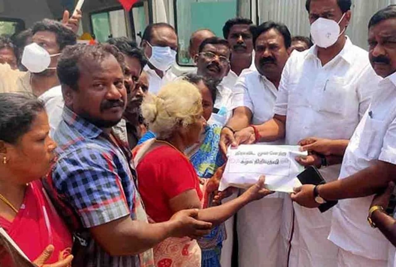 தமிழக முதல்வர் முக.ஸ்டாலின் வரவேற்பு நிகழ்ச்சியில், கூட்ட நெரிசலில் சிக்கி உயிரிழந்த திமுக தொண்டரின் குடும்பத்துக்கு ரூ.5 லட்சம் நிதியுதவி அளித்தனர்.