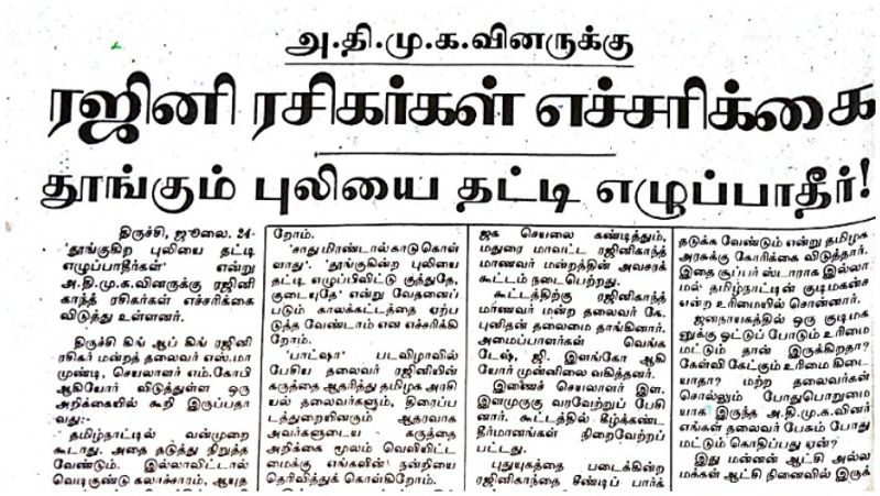 அப்போது தலைவர் ரஜினிகாந்த்தின் எதிர் குரலையும் அவரது புகைப்படங்களையும் அவர், சைக்கிள் ஓட்டும் போஸ்டர்களையும் வைத்து தான் தேர்தல் பிரச்சாரம் செய்து வெற்றி பெற்றீர்கள். அதனை தி.மு.க.,வினர் மறந்து விட்டு இப்போது தாங்கள் மட்டுமே பெரிய ஆள் என்கிற மமதையில் அவர்கள் நடந்து கொள்கிறார், பழையதை மறந்து விட்டு பேசக்கூடாது என ரஜினி ரசிகர்கள் திமுகவினரை எச்சரித்து புகைப்படங்களை பகிர்ந்து வருகின்றனர்.
