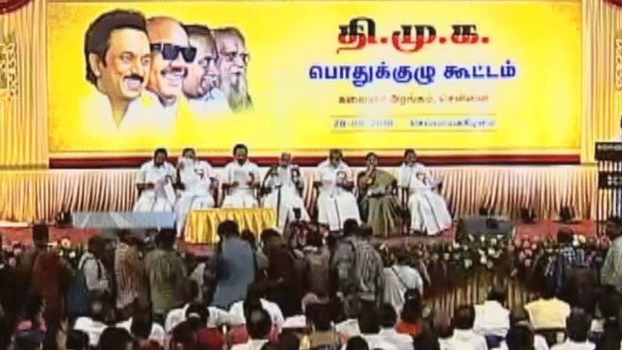 சென்னை அண்ணா அறிவாலயத்தில் திமுக பொதுக்குழு கூட்டம் தொடங்கியது. பொதுக்குழு கூட்டத்தில் க. அன்பழகன், மு.க.ஸ்டாலின், துரைமுருகன், கனிமொழி, ஐ.பெரியசாமி, கட்சி நிர்வாகிகள் உள்ளிட்டோர் பங்கேற்றுள்ளனர். திமுக பொதுக்குழுக் கூட்டத்தில் கருணாநிதி, முன்னாள் பிரதமர் வாஜ்பாய், முன்னாள் லோக்சபா சபாநாயகர் சோம்நாத் சாட்டர்ஜி, முன்னாள் ஆளுநர் சுர்ஜித் சிங் பர்னாலா, ஐ.நா. முன்னாள் பொதுச்செயலாளர் கோஃபி அன்னா உள்ளிட்டோர் மறைவுக்கு இரங்கல் தீர்மானம் நிறைவேற்றப்பட்டது.