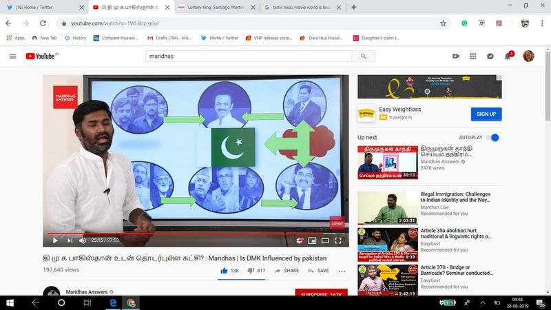 தீவிரவாத அமைப்புகளிடம் பணத்தை பெற்றுக்கொண்டு காஷ்மீர் விவகாரத்தில் மத்திய அரசுக்கு எதிராக திமுக போராட்டம் நடத்துகிறது என்பதுதான் அந்த குற்றச்சாட்டு. அதற்கான ஆதாரங்களையும் சமூக வலைதளங்களில் வீடியோவாக வெளியிட்டு தகவல்களை புட்டு புட்டுவைத்தார் மாரிதாஸ் . ஸ்டாலினுக்கு யார்யாருடன் தொடர்பு உள்ளது அவருக்கு எங்கிருந்தெல்லாம் பணம் வருகிறது என்று அவர் விளக்கமாக கூறினார். தீவிரவாத இயக்கங்களுக்கு ஆதரவாக செயல்படும் திமுகவை ஏன் தடை செய்யக்கூடாது என்று அவர் அப்போது எழுப்பிய கேள்வி திமுகவை நடுநடுங்கவைத்து விட்டது.