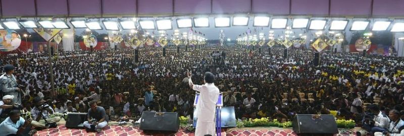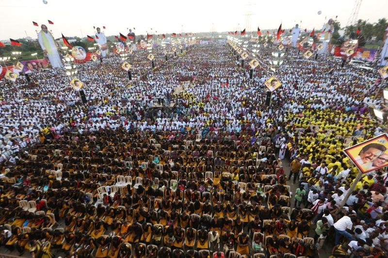 உண்மையிலேயே பெரும் கூட்டம் கூடியிருந்தது செந்தில்பாலாஜி ஏற்பாடு செய்திருந்த நிகழ்ச்சிக்கு. இதில் மேடையிலிருந்து கீழே சில வரிசையில் பல நூறு பெண்களையும், ஆண்களையும் சீருடையில் அமர வைத்திருந்தனர். அதுவும் ஆண்கள் பளீர் மஞ்சள் நிற டீ ஷர்ட்டும், பெண்கள் மஞ்சள் நிற டாப் மற்றும் கருப்பு நிற ஷால் ஆகியன அணிந்து அமர்ந்திருந்தனர். இந்த மாஸ் கலர் ஒருவித கெத்தை காண்பித்தது முன்வரிசை கூட்டத்துக்கு.