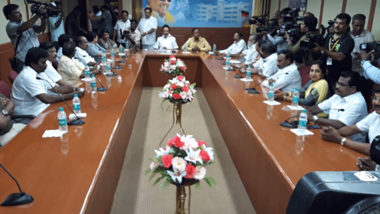 திமுக தலைவர் மு.க. ஸ்டாலின் தலைமையில் திமுக புதிய எம்பிக்கள் கூட்டம் சென்னையில் மாலையில் நடைபெற்றது. அண்ணா அறிவாலயத்தில் மாலை 5 மணிக்கு கூடிய இந்த கூட்டத்தில் உதயசூரியன் சின்னத்தில் போட்டியிட்டு வெற்றி பெற்ற 23 மக்களவை உறுப்பினர்களும், இடைத்தேர்தலில் வெற்றி பெற்ற 13 எம்.எல்.ஏ.க்களும் கலந்து கொண்டனர். குறிப்பாக, ஈரோடு - கணேசமூர்த்தி, பெரம்பலூர் - பச்சமுத்து, விழுப்புரம் - ரவிக்குமார், நாமக்கல் - சின்ராஜ் ஆகியோருக்கும் அழைப்பு விடுக்கப்பட்டது.