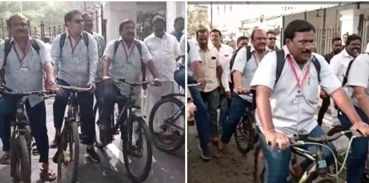 புதுச்சேரி சட்டப்பேரவையின் கூட்டத்தொடர் இன்று காலை தொடங்கியதும் சபாநாயகர் செல்வம், மறைந்த இங்கிலாந்து ராணியின் மறைவுக்கு இரங்கல் தெரிவிக்கப்பட்டு உறுப்பினர்கள் அனைவரும் இரண்டு நிமிடம் மவுன அஞ்சலி செலுத்தினர். முன்னதாக சட்டப்பேரவைக்கு வந்த திமுக எம்.எல்.ஏக்களான எதிர்கட்சி தலைவர் சிவா தலைமையில், நாஜீம், அனிபால் கென்னடி, சம்பத், செந்தில்குமார், நாக தியாகராஜன் ஆகியோர் பள்ளி சீருடை அணிந்தும், புத்தக பை மாட்டிக்கொண்டு சைக்கிளில் வந்தனர். இதனால் பரபரப்பு ஏற்பட்டது. பள்ளிகள் தொடங்கி ஒருவருட காலம் முடிவடைய உள்ள நிலையில் இதுவரை மாணவர்களுக்கு அரசு பள்ளி சீருடை வழங்காததற்கு எதிர்ப்பு தெரிவிக்கும் வகையில் பள்ளி சீருடை அணிந்து சைக்கிளில் வந்தனர்.
