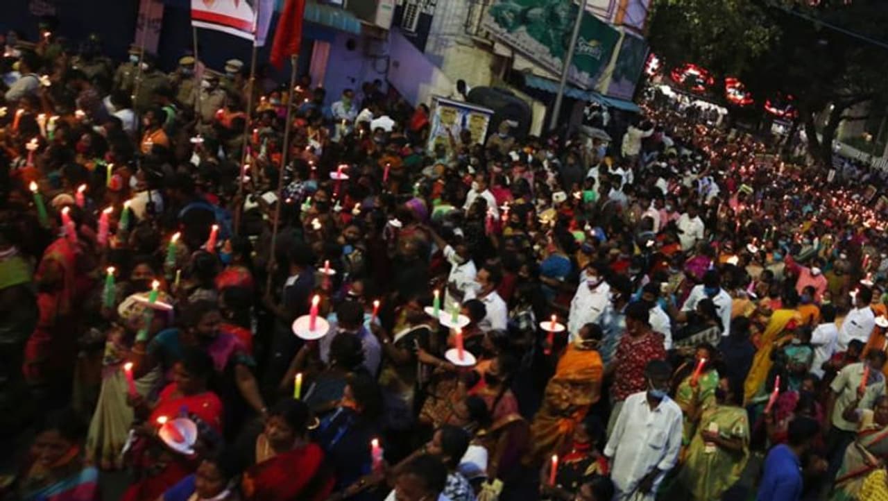 இந்நிலையில், சென்னையில் தடையை மீறி பேரணி நடத்தியதாக திமுக எம்.பி. கனிமொழி, கீதாஜீவன் எம்.எல்.ஏ. உட்பட 191 பேர் மீது கிண்டி போலீசார் வழக்குப்பதிவு செய்துள்ளனர். சட்ட விரோதமாக கூடுதல், தொற்று நோயைப் பரப்பக்கூடிய செயலில் ஈடுபட்டது உள்ளிட்ட 5 பிரிவுகளின் கீழ் வழக்குப்பதிவு செய்யப்பட்டுள்ளது.