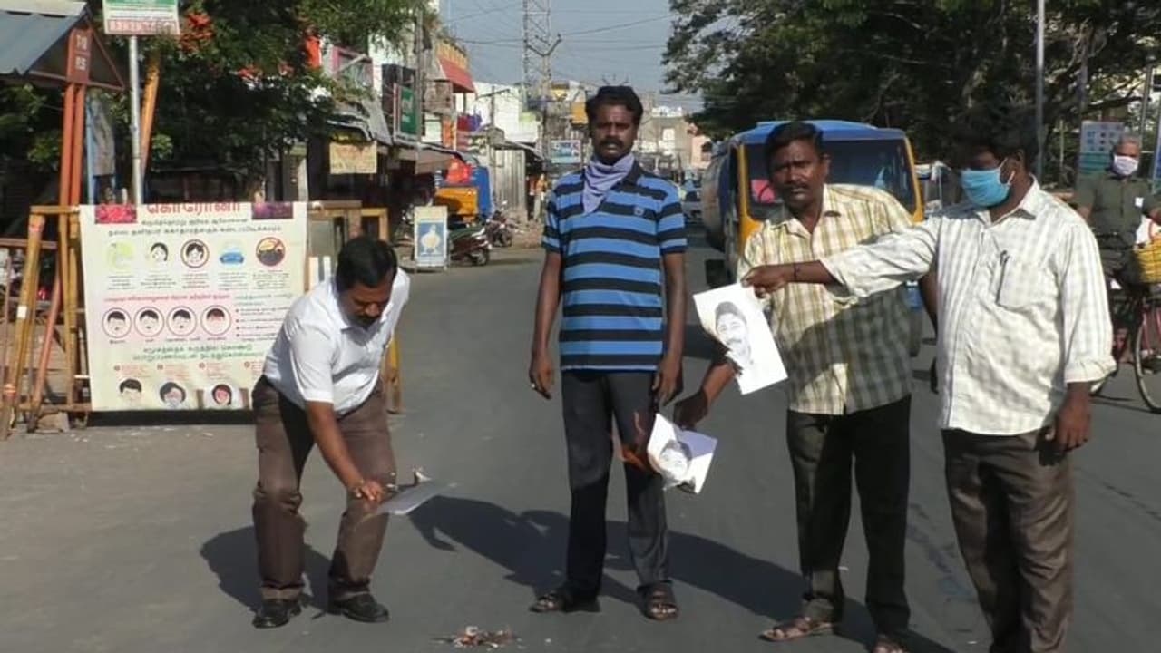 ஸ்ரீபெரும்புதூர் நாடாளுமன்ற உறுப்பினர் டி.ஆர் பாலு மற்றும் மத்திய சென்னை நாடாளுமன்ற உறுப்பினர் தயாநிதி மாறன் ஆகியோரை கண்டித்து அய்யப்பாக்கம் பகுதியில் சமூக ஆர்வலர்கள் ஐந்து பேர் சேர்ந்து அவர்களது உருவ படத்தை எரித்து தங்கள் எதிர்ப்பைவெளிப்படுத்தியுள்ளனர்