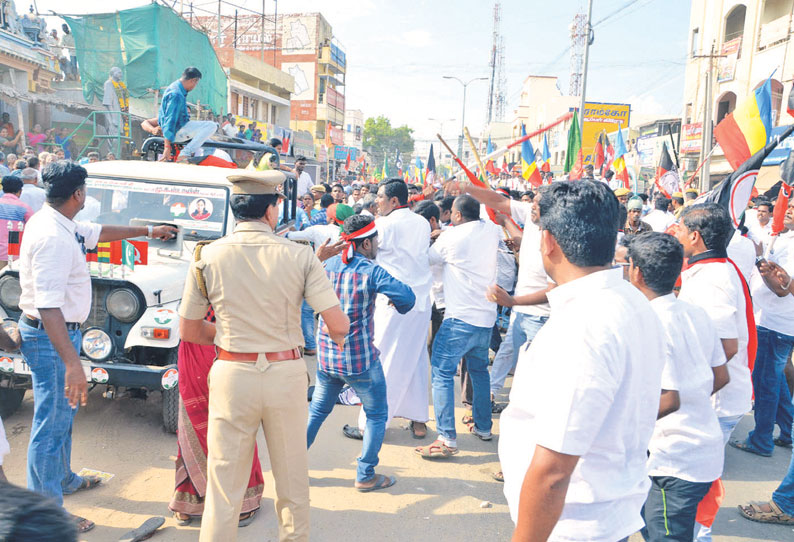 சிதம்பரம் (தனி) மக்களவை தொகுதியில் திமுக கூட்டணியில் விசிக தலைவர் திருமாவளவன் பானை சின்னத்தில் போட்டியிடுகிறார். அவரை எதிர்த்து அதிமுகவில் சந்திரசேகர் போட்டியிடுகிறார். இந்நிலையில் சிதம்பரம் தொகுதிக்குட்பட்ட அரியலூர் அருகே உள்ள பொன்பரப்பியில் அதிமுகவினர் திருமாவின் சின்னமான பானையை உடைத்ததால் இரு தரப்பினர் இடையே மோதல் ஏற்பட்டது. இதில் 20க்கும் மேற்பட்ட வீடுகள் சூறையாரப்பட்டன.