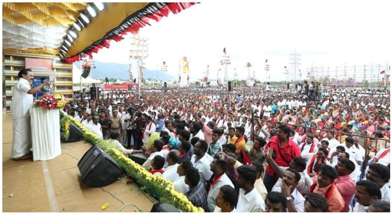 அமமுக கொள்கை பரப்புச் செயலாளராக இருந்த தங்க தமிழ்ச்செல்வன் கடந்த அக்கட்சியிலிருந்து விலகி திமுகவில் இணைந்தார். இதனையடுத்து தேனியில் அவருடைய ஆதரவாளர்கள் திமுகவில் இணையும் விழாவும் பொதுக்கூட்டமும் தங்க தமிழ்ச்செல்வன் தலைமையில் வீரபாண்டியில் இன்று மாலை நடைபெற்றது. இந்த விழாவில் திமுக தலைவர் மு.க. ஸ்டாலின் பங்கேற்று பேசினார்.