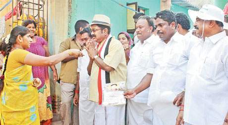 இந்நிலையில் தண்டையார் பேட்டை 39 வது வார்டில் சுகாதாரத்துறை அமைச்சர் விஜயபாஸ்கர் தலைமையில் வீடு வீடாக சென்று வாக்காளர்களுக்கு புடவை குடம் தங்க நகை பணம் உள்ளிட்டவைகள் வழங்கப்பட்டு வருவதாக தெரிகிறது.