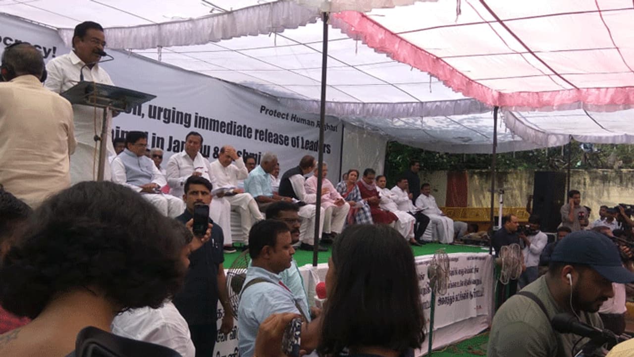 கம்யூனிஸ்ட் கட்சி சார்பாக சீதாராமன் யெட்சூரி போராட்டத்தில் கலந்து கொண்டுள்ளார். அதேபோல் சிபிஐயால் கைது செய்யப்பட்டுள்ள முன்னாள் மத்திய அமைச்சர் ப.சிதம்பரம் மகனும் சிவகங்கை தொகுதி எம்.பியுமான கார்த்தி சிதம்பரமும் பங்கேற்றுள்ளார். இந்த போராட்டம் காரணமாக டெல்லி ஜந்தர் மந்தரில் பாதுகாப்பு பலப்படுத்தப்பட்டுள்ளது. அங்கு இன்று போராட்டம் நடத்தும் நபர்கள் அப்புறப்படுத்தப்பட வாய்ப்புள்ளதாக தெரிகிறது. இந்திராகாந்தி காலத்தில் கொண்டு வரப்பட்ட மிசா கருணாநிதியை இந்திய அளவில் கொண்டு சேர்த்தது. தற்போது மோடி காலத்தில் காஷ்மீர் விவகாரம் தங்கள் தலைவர் ஸ்டாலினை உலக அளவில் கொண்டு சேர்த்துள்ளதாக திமுக தொண்டர்கள் கருத்துக்களை பதிவிட்டு வருகின்றனர்.