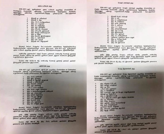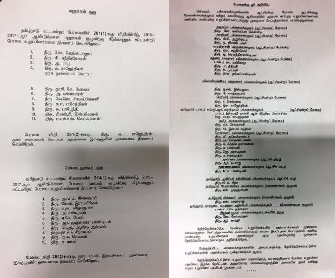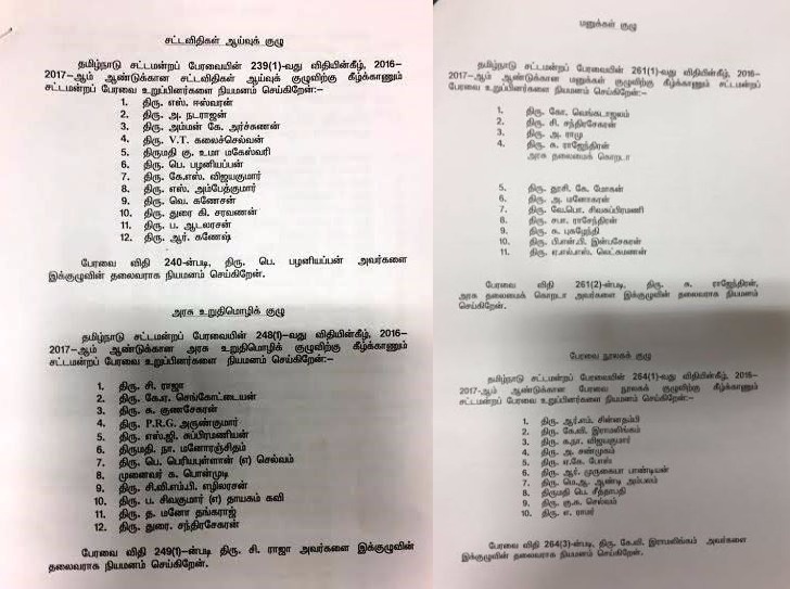 இதனிடையே, தனக்கு சட்டப்பேரவையின் கூட்டத்தொடரின் போது 12 குழுக்கள் அமைக்கப்பட்டது. இதற்கான அறிவிப்பை சபாநாயகர் வெளியிட்டார்.
