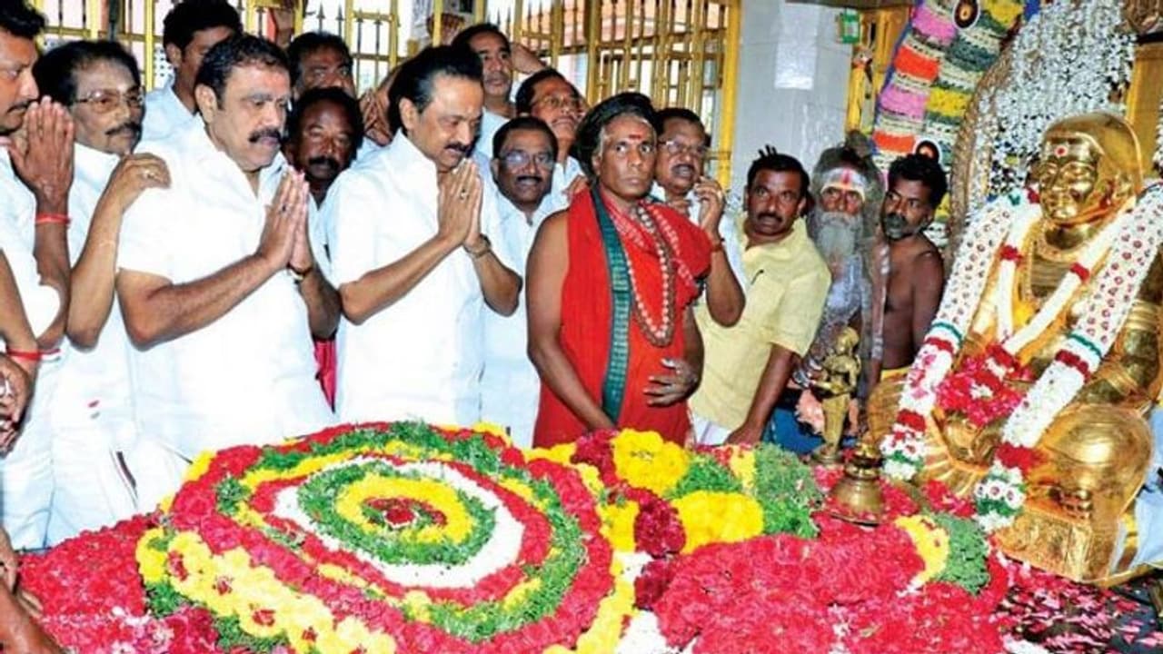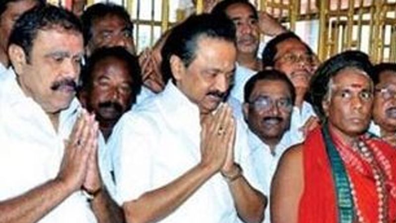 இதனை அறிந்து காரில் இருந்து இறங்கிய ஸ்டாலின் அர்ச்சகர்களிடம் நலம் விசாரித்துக் கொண்டிருந்தார். அப்போது அர்ச்சகர்கள் தங்கள் கோரிக்கைகள் குறித்து ஸ்டாலினிடம் எடுத்துரைத்தனர். இதனை கேட்டு ஆவண செய்வதாக கூறிவிட்டு புறப்பட தயாரான போது அர்ச்சகர் ஒருவர் ஸ்டாலினுக்கு பொன்னாடை போர்த்தியதுடன் விபூதியும் வைத்துவிட்டார்.