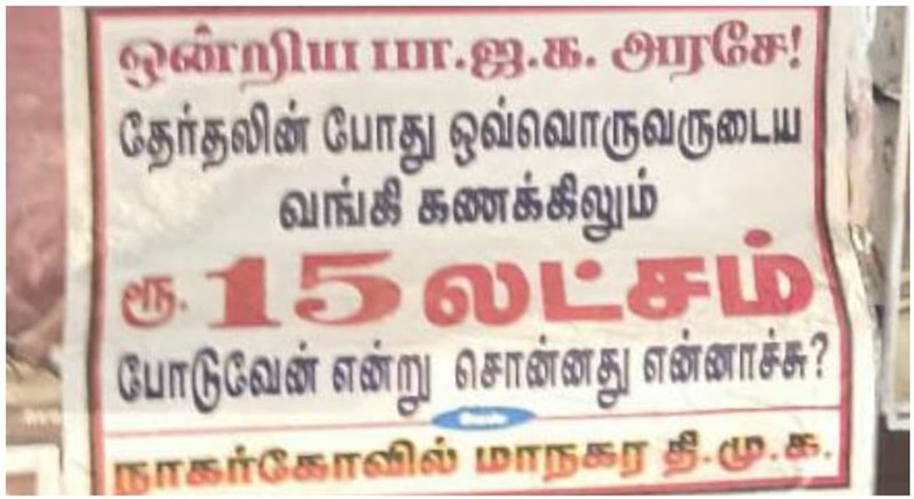 இதனையடுத்து கன்னியாகுமரி மாவட்ட திமுகவினர் பாஜகவுக்கு போஸ்டர் மூலமே பதிலடிக் கொடுத்தனர். நாகர்கோவில் மாநகர திமுக சார்பில், ‘ஒன்றிய பாஜக அரசே, தேர்தலின் போது ஒவ்வொருவர் வங்கிக் கணக்கிலும் ரூ. 15 லட்சம் போடுவேன் எனச் சொன்னது என்னாச்சு?’ என போஸ்டர் ஒட்டப்பட்டது. மேலும் மோடி ஆட்சிக்கு வருவதற்கு முன்பு மாநில தலைவராக இருந்த பொன்.ராதாகிருஷ்ணன், காங்கிரஸ் அரசு இந்துக்களுக்கு கல்வி உதவித் தொகை வழங்க வேண்டும் என்று போராட்டங்களை நடத்தினர். இப்போது பாஜக ஆட்சிக்கு வந்து 8 ஆண்டுகள் நிறைவடைய உள்ள நிலையில், அந்த கல்வி உதவித் தொகை என்னானது என்றும் திமுகவினர் கேள்வி எழுப்பினர்.