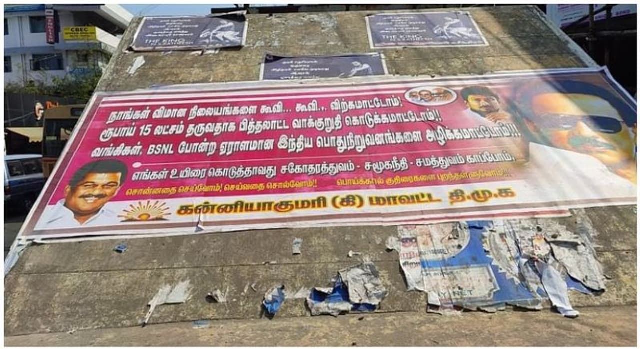 கன்னியாகுமரி மாவட்டத்தில் திமுக - பாஜக இடையேயான மோதல் அடுத்த கட்டத்தை எட்டியிருக்கிறது. இரு கட்சியினரும் போஸ்டர் யுத்தம் நடத்தி வருகிறார்கள்.