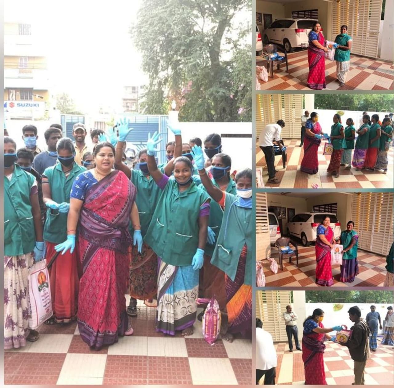 திமுக மகளிர் அணி சார்பாக மாவட்ட அமைப்பாளர் கவிதா தண்டபாணி தனது சொந்த செலவில் ஒரு லட்சம் மதிப்பிலான மளிகை பொருட்கள், முகக் கவசங்கள், கையுறைகள் உள்ளிட்டவற்றை அடங்கிய தொகுப்பை கொரோனா தடுப்பு நடவடிக்கையில் ஈடுபட்டிருக்கும் பணியாளர்களுக்கு வழங்கினார்.