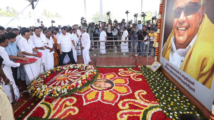 மக்களவை தேர்தலில் தமிழகத்தில் திமுக-காங்கிரஸ் கூட்டணி அமோக வெற்றிபெற்றுள்ளது. திமுக 19 மக்களவை தொகுதிகளிலும் 22 தொகுதிகளுக்கு நடைபெற்ற சட்டப்பேரவை இடைத்தேர்தலிலும் 13 தொகுதிகளில் வெற்றிபெற்றுள்ளது. இந்நிலையில், திமுக தலைவர் மு.க.ஸ்டாலின், வெற்றி பெற்ற எம்.பி.க்கள் 19 பேர், எம்.எல்.ஏ.க்கள் 13 பேருடன், சென்னை மெரினாவில் உள்ள உழைப்பாளர் சிலையில் இருந்து, பேரறிஞர் அண்ணா நினைவிட வளாகம் நோக்கி ஊர்வலமாக சென்றார். அண்ணா மற்றும் கலைஞர் நினைவிடங்களில் அவர்கள் மலர்வளையம் வைத்து அஞ்சலி செலுத்தினர்.
