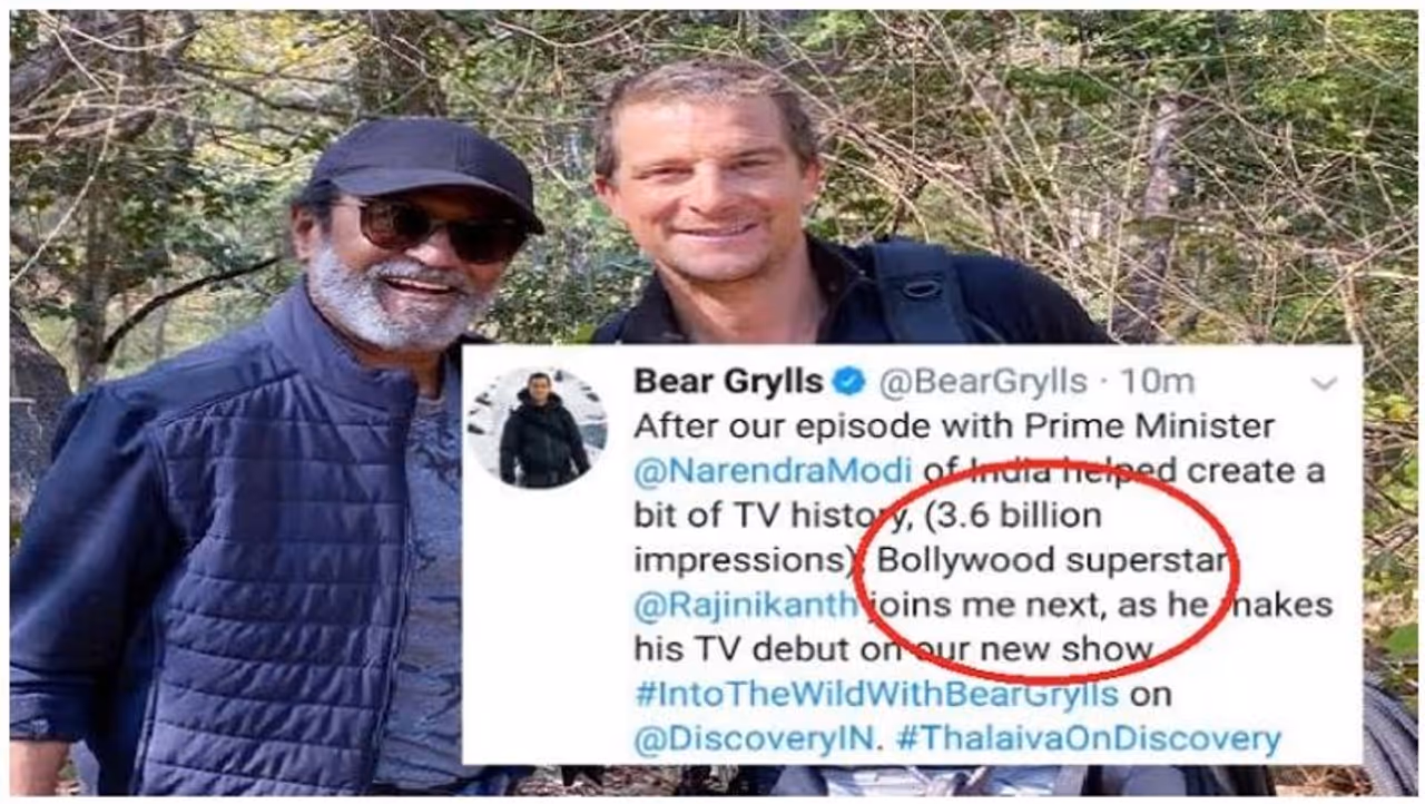 மோடியை அடுத்து பியர் கிரில்ஸ் நிகழ்ச்சியில் நடிகர் ரஜினி கலந்துகொண்டுள்ளார். இது தொடர்பான புகைப்படங்களும் சமூக வலைதளங்களில் வைரலாகி வருகிறது. இந்நிலையில் இது குறித்து பியர் கிரில்ஸ் முதலில் ஒரு ட்வீட் செய்தார். அதில், பிரதமர் மோடி உடனான நிகழ்ச்சி, தொலைக்காட்சி வரலாற்றில் சாதனை படைத்தது. அதன் பிறகு பாலிவுட் சூப்பர் ஸ்டார் ரஜினி என்னுடைய புதிய நிகழ்ச்சியில் இணைந்துள்ளார் என குறிப்பிட்டிருந்தார். ரஜினியுடன்தான் இருக்கும் புகைப்படம் ஒன்றையும் அவர் பகிர்ந்தார்.