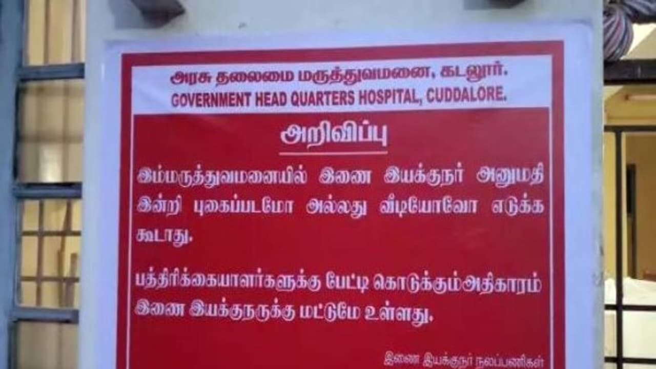 இது போல், கடலூர் அரசு மருத்துவமனையில் செய்தியாளர்கள் செய்தி சேகரிக்கத் தடை விதித்து போஸ்டர் ஒட்டப்பட்டுள்ளது. இதைக் கண்டு, பொதுமக்களும் பத்திரிகையாளர்களும் கடும் அதிர்ச்சியடைந்தனர்.