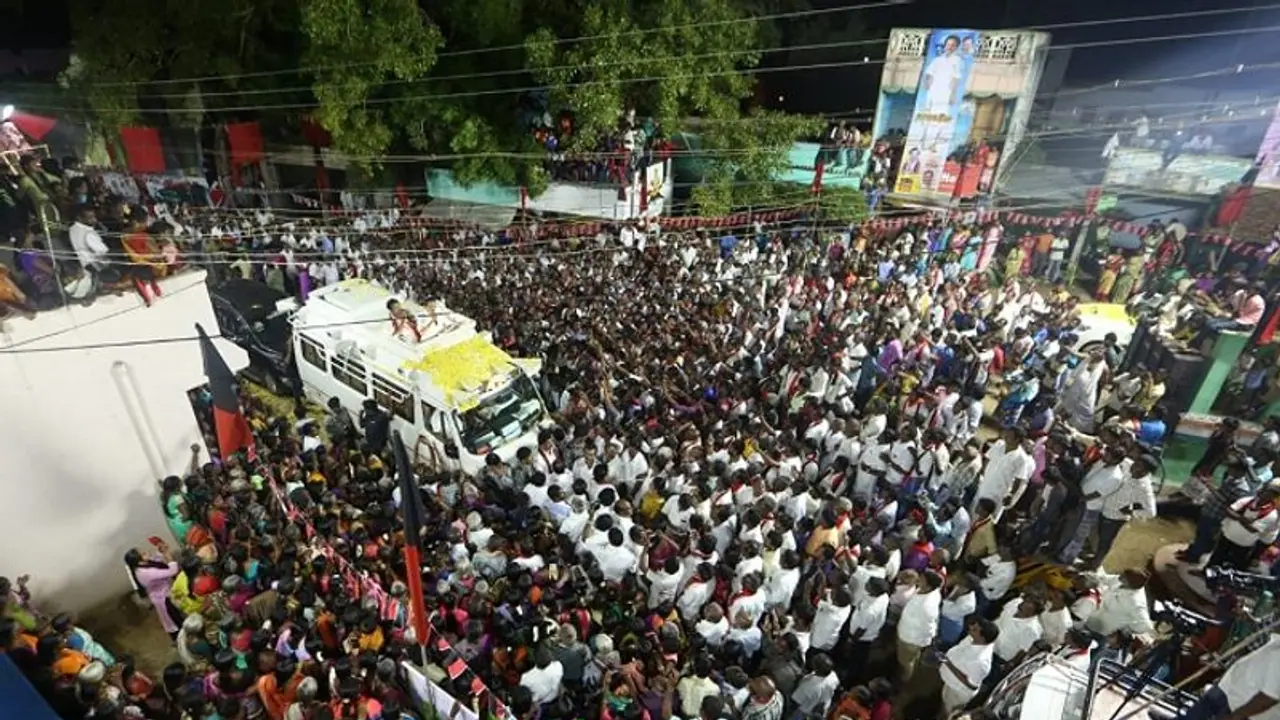 வேலூர் மக்களவை தொகுதிக்கான தேர்தல் வரும் 5ம் தேதி நடைபெறவுள்ளது. இந்த தேர்தலில் தி.மு.க சார்பில் சார்பில் திமுக பொருளாளர் துரை முருகனின் மகன் கதிர் ஆனந்த் போட்டியிடுபிகிறார். அவரை ஆதரித்து தி.மு.க தலைவர் மு.க.ஸ்டாலின் இரண்டாவது நாளாக பிரசாரம் மேற்கொண்டார். கதிர் ஆனந்த் நிம்மியம்பட்டு பகுதியில் தி.மு.க தலைவர் மு.க.ஸ்டாலின் திறந்த வேனில் பிரச்சாரம் செய்தார்.