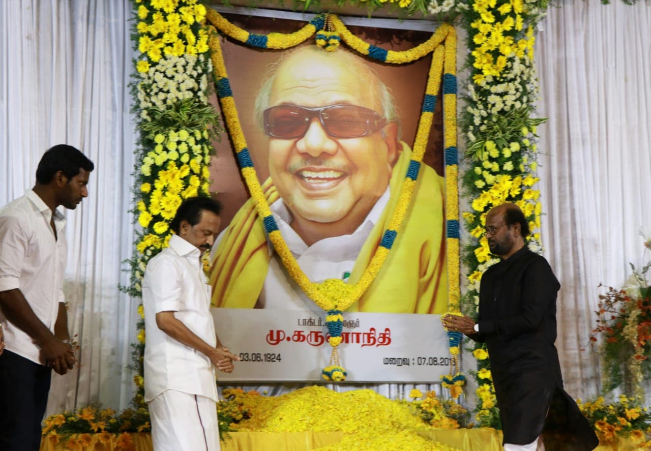 தி.மு.க., தலைவர்கருணாநிதி, வயதுமுதிர்வுமற்றும்உடல்நலக்குறைவால், ஆக., 7ல்காலமானார். அவரதுஉடல், மெரினாவில்உள்ளஅண்ணாதுரைநினைவிடத்தில்,நல்லடக்கம்செய்யப்பட்டது.