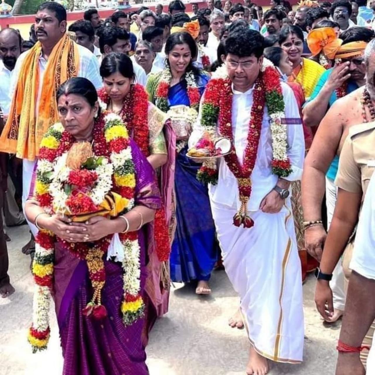 பிறகு கோவில் விமான கலசம், ராஜகோபுரம் மற்றும் பரிவார தெய்வங்கள் சன்னதி கலசங்களில் துர்கா ஸ்டாலின் பச்சைக் கொடியை அசைத்து காட்டிட புனித நீர் சிவாச்சாரியார்களால் ஊற்றப்பட்டு கும்பாபிஷேகம் நடைபெற்றது. மேலும் இந்த விழாவில் அமைச்சர் மெய்யநாதன், எம்எல்ஏக்கள் நிவேதா முருகன், பன்னீர்செல்வம்,கலெக்டர் லலிதா ஆகியோர் கலந்துகொண்டனர். நெட்டிசன்கள் பலரும் இந்த புகைப்படங்களை பகிர்ந்து பகுத்தறிவுக்கு வந்த சோதனை, இதுதான் சுயமரியாதை கற்றுக்கொடுத்த இயக்கமா ? என்று பல்வேறு கருத்துக்களை பதிவிட்டு வருகிறார்கள்.