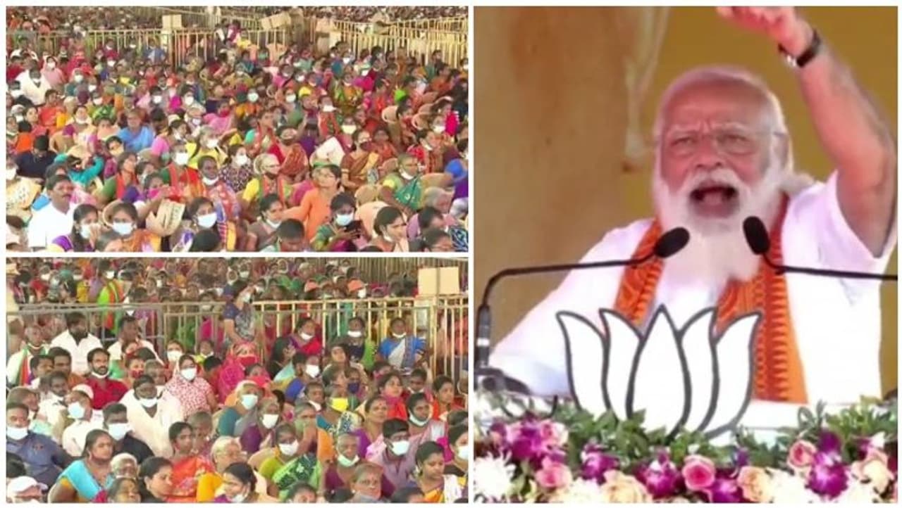 கோவை நடைபெறும் பாஜக பொதுக்கூட்டத்தில் ‘வெற்றிவேல்... வீரவேல்’ என பிரதமர் மோடி முழக்கமிட்ட மோடி இந்த ஆண்டு தமிழக மக்கள் புதிய ஆட்சியை தேர்ந்தெடுக்க உள்ளதாக கூறி அதிமுக தலைமைக்கு அதிர்ச்சி ஏற்படுத்தி உள்ளார்.