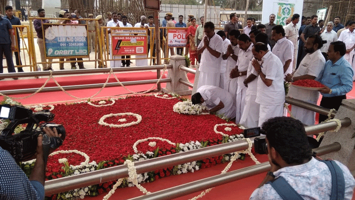 முன்னதாக, ஜெயலலிதா நினைவிடம் சென்ற முதல்வர் பழனிசாமி அங்கு மலர்கள் தூவி மரியாதை செலுத்தினார். ஏற்கனவே மக்களவை தேர்தலில் தேனி தொகுதியில் மட்டும் வெற்றி பெற்ற துணைமுதல்வர் ஓபிஎஸ் மகன் ஜெயலலிதா நினைவிடத்திற்கு சென்று மரியாதை செலுத்தினார். ஆனால் முதல்வர் மற்றும் இடைத்தேர்தலில் வெற்றி பெற்ற எம்.எல்.ஏ.க்கள் ஜெயலலிதா நினைவிடத்திற்கு சென்று அஞ்சலி செலுத்தவில்லை என்று விமர்சனங்கள் எழுந்த நிலையில் முதல்வர் பழனிச்சாமி ஜெயலலிதா நினைவிடத்திற்கு சென்றதாகவே கூறப்படுகிறது.