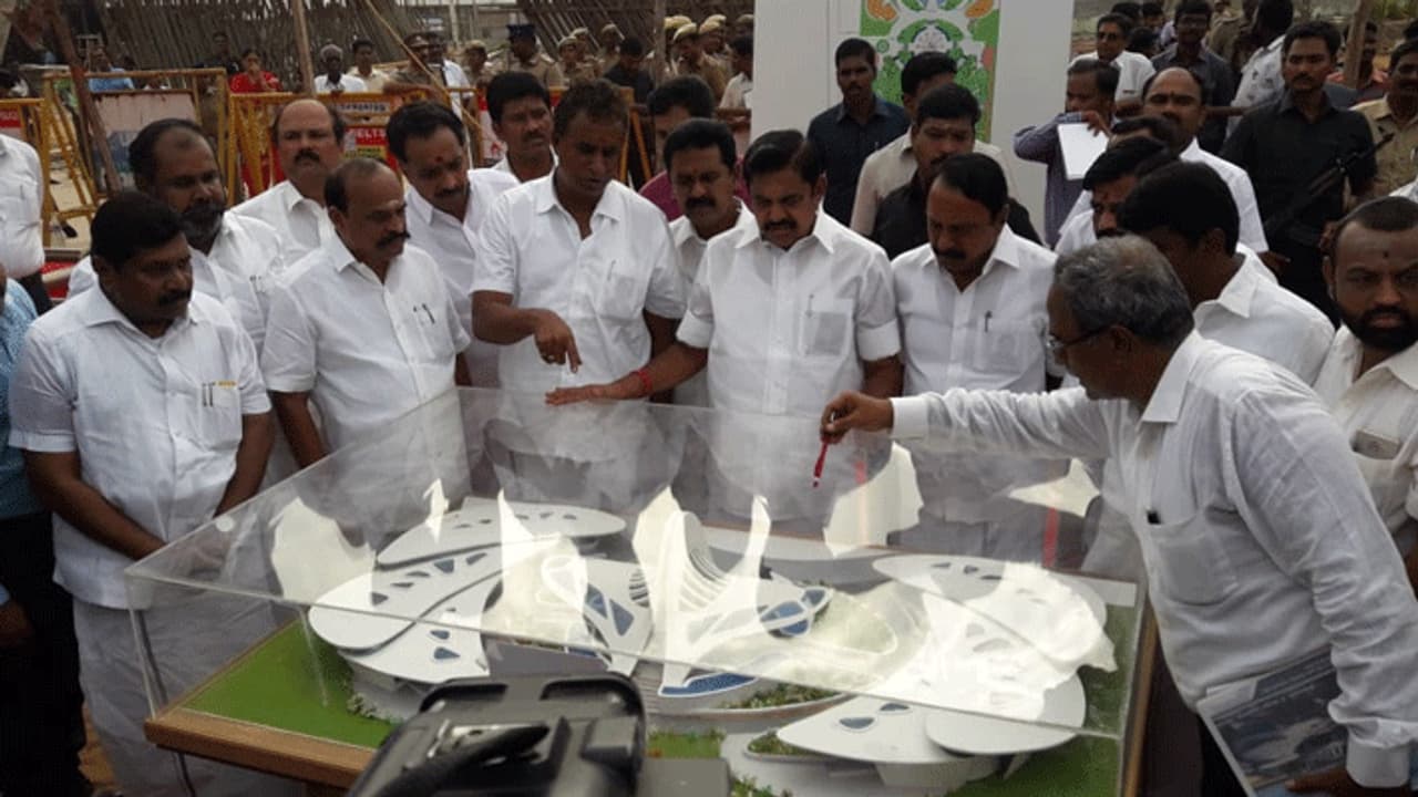 சென்னை மெரினாவில் மறைந்த முன்னாள் முதல்வர் ஜெயலலிதாவுக்கு நினைவு மண்டபம் கட்டப்பட்டு வருகிறது. எம்.ஜி.ஆர். நினைவிடம் அருகே பீனிக்ஸ் பறவை வடிவில் ரூ.50.80 கோடியில் அந்த நினைவு மண்டபம் அமைய உள்ளது. அதற்கான கட்டுமான பணிகளை தமிழக முதல்வர் எடப்பாடி பழனிச்சாமி திடீரென ஆய்வு செய்தார். அவருடன் அமைச்சர்கள் செங்கோட்டையன், வேலுமணி, காமராஜ், கடம்பூர் ராஜூ, உதயகுமார் உள்ளிட்டோரும் உடனிருந்தனர்.