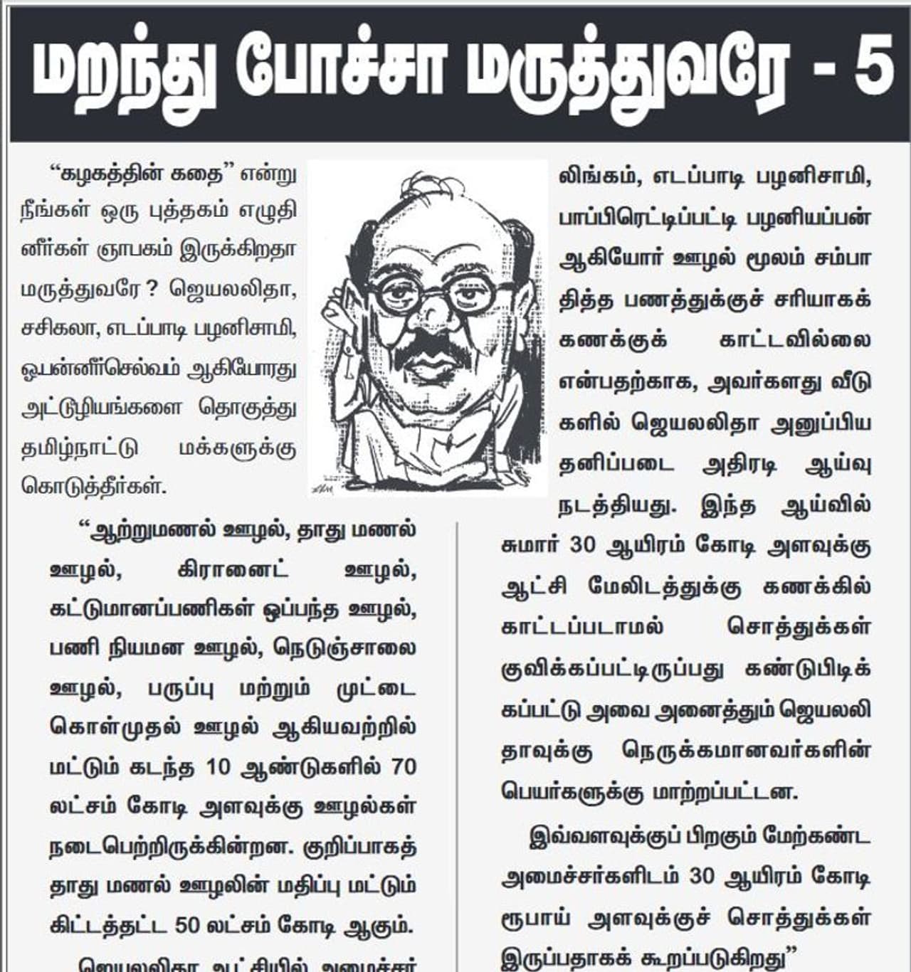 இவ்வளவுக்குப் பிறகும் மேற்கண்ட அமைச்சர்களிடம் இருந்து 30 ஆயிரம் கோடி ரூபாய் அளவுக்கு சொத்துக்கள் இருப்பதாக கூறப்படுகிறது’’ இதையெல்லாம் எழுதியது நீங்கள் தானே மருத்துவரே? என கேள்வி எழுப்பி இருக்கிறது.