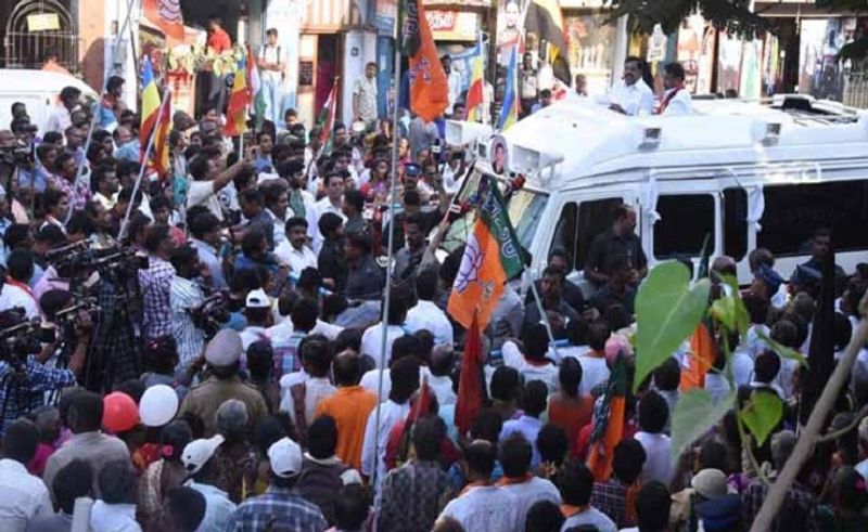 நேற்று முன்தினம் இரவு 8.45 மணியளவில் வேனில் நின்றுகொண்டு பிரசாரம் செய்து கொண்டிருந்தார்ப. அவருடன் வைத்திலிங்கம் எம்.பி, வேட்பாளர் நடராஜன் ஆகியோர் நின்றிருந்தனர்.