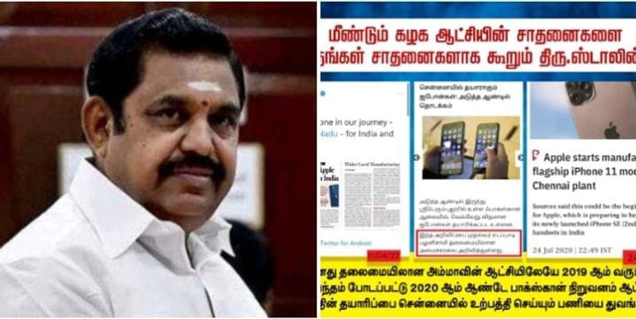 இந்தநிலையில் எதிர்கட்சி தலைவர் எடப்பாடி பழனிசாமி வெளியிட்டுள்ள டுவிட்டர் பதிவில், ஆப்பிள் ஐபோன்களை தயாரிக்கும் பணிகளுக்கான ஒப்பந்தம் கடந்த அதிமுக ஆட்சி காலத்தில் மேற்கொள்ளப்பட்டதாகவும், ஆனால் வழக்கம் போல் இதையும் தங்கள் சாதனை போல காட்டி கொள்ள முதலமைச்சர் மு.க.ஸ்டாலின் முயலுவதாக எடப்பாடி பழனிசாமி குற்றம்சாட்டியுள்ளார். மேலும் இந்த திட்டம் மேட் இன் தமிழ்நாடு தான்.. ஆனால் மேட் இன் அம்மா அரசு என அதில் குறிப்பிட்டுள்ளார். தனது தலைமையிலான அதிமுக ஆட்சியில் 2019 ஆம் ஆண்டே ஒப்பந்தம் போடப்பட்டு 2020 ஆம் ஆண்டு பாக்ஸ்கான் நிறுவனம் ஆப்பிள் நிறுவனத்தின் தயாரிப்பை சென்னையில் தொடங்கிவிட்டதாக அந்த டுவிட்டர் பதிவில் குறிப்பிட்டுள்ளார்.