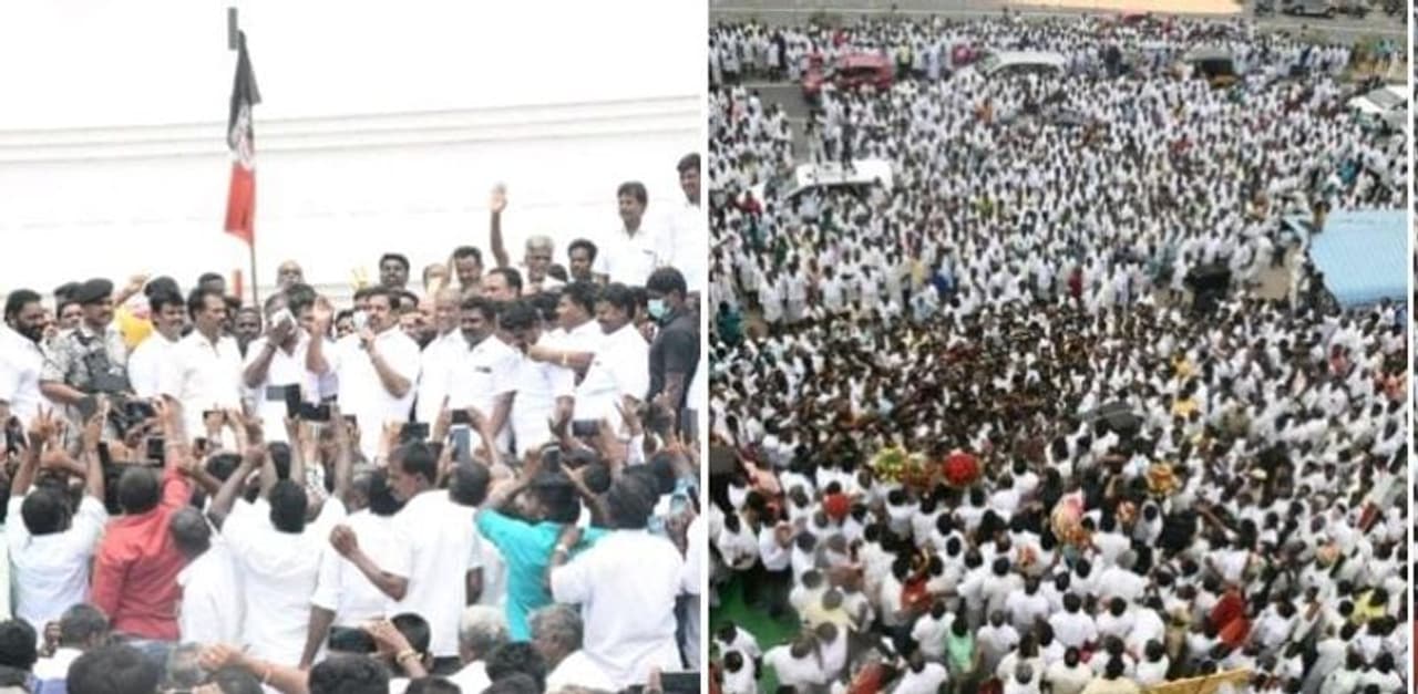 அதிமுகவில் ஒற்றை தலைமை விவகாரம் பரபரப்பை ஏற்படுத்தியுள்ளது. இதன் காரணமாக ஓபிஎஸ்- இபிஎஸ் என இரண்டாக பிளவுபட்டுள்ளது. இதனையடுத்து நடைபெற்ற பொதுக்குழு கூட்டத்தில் அதிமுக இடைக்கால பொதுச்செயலாளராக இபிஎஸ் தேர்ந்தெடுக்கப்பட்டுள்ளார். இந்தநிலையில் கொங்கு மற்றும் வட மாவட்டங்களில் சுற்றுப்பயணம் செய்து எடப்பாடி பழனிசாமி தொண்டர்களை சந்தித்து வருகிறார். நேற்று முன் தினம் பழனியில் தனது சுற்றுப்பயணத்தை தொடங்கிய இபிஎஸ் திருப்பூர், ஈரோடு, சேலம் ஆகிய இடங்களில் தொண்டர்களை சந்தித்தார். இதனையடுத்து நேற்று கிருஷ்ணகிரி, திருப்பத்தூர், வேலூர், ராணிப்பேட்டை, காஞ்சிபுரம், திருவள்ளூர் மாவட்டத்தில் தொண்டர்களின் ஆதரவை திரட்டினார். இதனையடுத்து அங்கு நடைபெற்ற கூட்டத்தில் பேசிய இபிஎஸ், எம்ஜிஆர் இறந்த பிறகு ஜெயலலிதா அதிமுகவை பல மடங்கு உயர்த்தி இந்தியாவின் மிகப்பெரிய 3-வது கட்சியாக மாற்றி காட்டினார் எனவே, காற்றை எவ்வாறு தடுத்து நிறுத்த முடியாதோ அது போல் தான் அதிமுகவின் வளர்ச்சியை யாராலும் தடுத்து நிறுத்த முடியாது என கூறினார் .வீட்டு வரி 1000 ரூபாயிலிருந்து 2000 ரூபாயாகவும் மற்றும் வீட்டு வரி, சொத்து வரி ஆகியவற்றையும் திமுக அரசு உயர்ந்தியுள்ளதாகவும் குற்றம்சாட்டினார்.