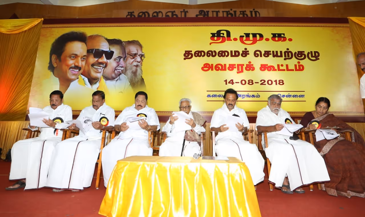செயற்குழு கூட்டத்தில் பிளக்ஸ் டிசைனே சொல்லுகிறது யார் அடுத்து திமுக தலவைர் என்பதை உணர்த்தியுள்ளது.