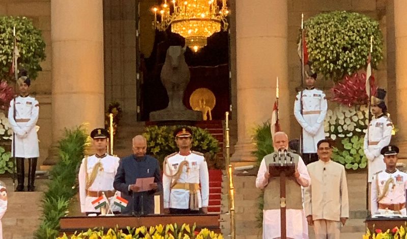 இதைத் தொடர்ந்து நாடாளுமன்ற பாரதீய ஜனதா கட்சியின் தலைவராக (பிரதமர்) தேர்ந்து எடுக்கப்பட்ட மோடிக்கு, புதிய பிரதமராக பதவி ஏற்குமாறு ஜனாதிபதி ராம்நாத் கோவிந்த் அழைப்பு விடுத்தார். அதை பிரதமர் மோடி ஏற்றார். பதவி ஏற்பு விழா ஜனாதிபதி மாளிகையில் உள்ள முற்றத்தில் தற்போது நடைபெற்று வருகிறது.