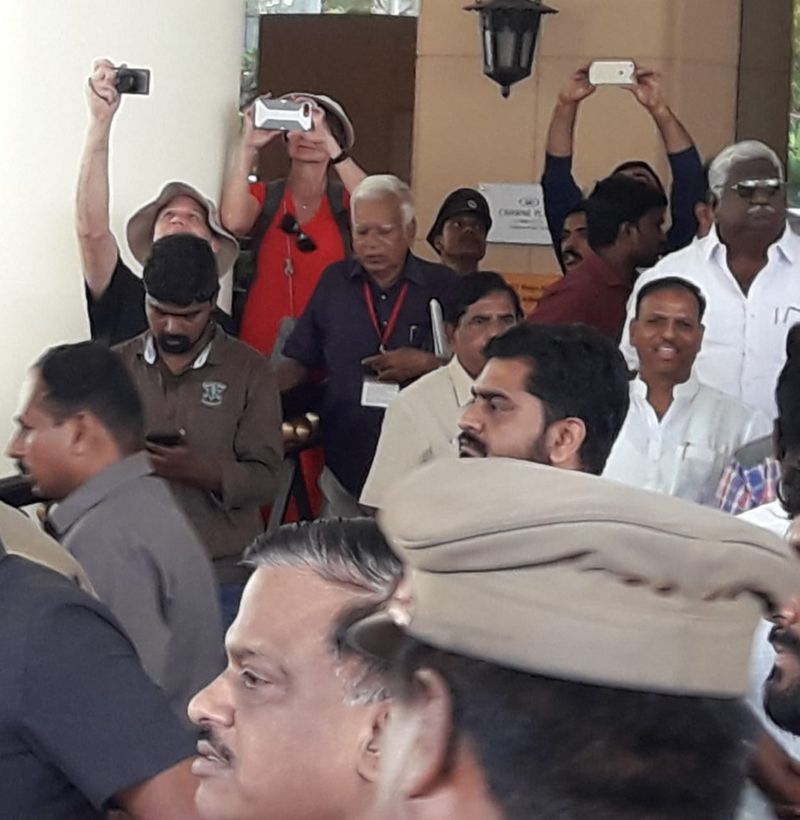 மேலும் மக்களவை தேர்தலில் கூட்டணி அமைப்பது தொடர்பாக பாமக-அதிமுக இடையே ஒப்பந்தம் கையெழுத்தாகி கூட்டாக கூட்டணி குறித்து அறிவித்தனர். இந்த அறிவிப்பு இன்று காலை கிரவுன் பிளாசா ஹோட்டலில் நடைபெற்றதால், அங்கு தங்கி இருந்த வெளிநாட்டினர் ஆர்வமாக போட்டோ எடுத்தனர்.