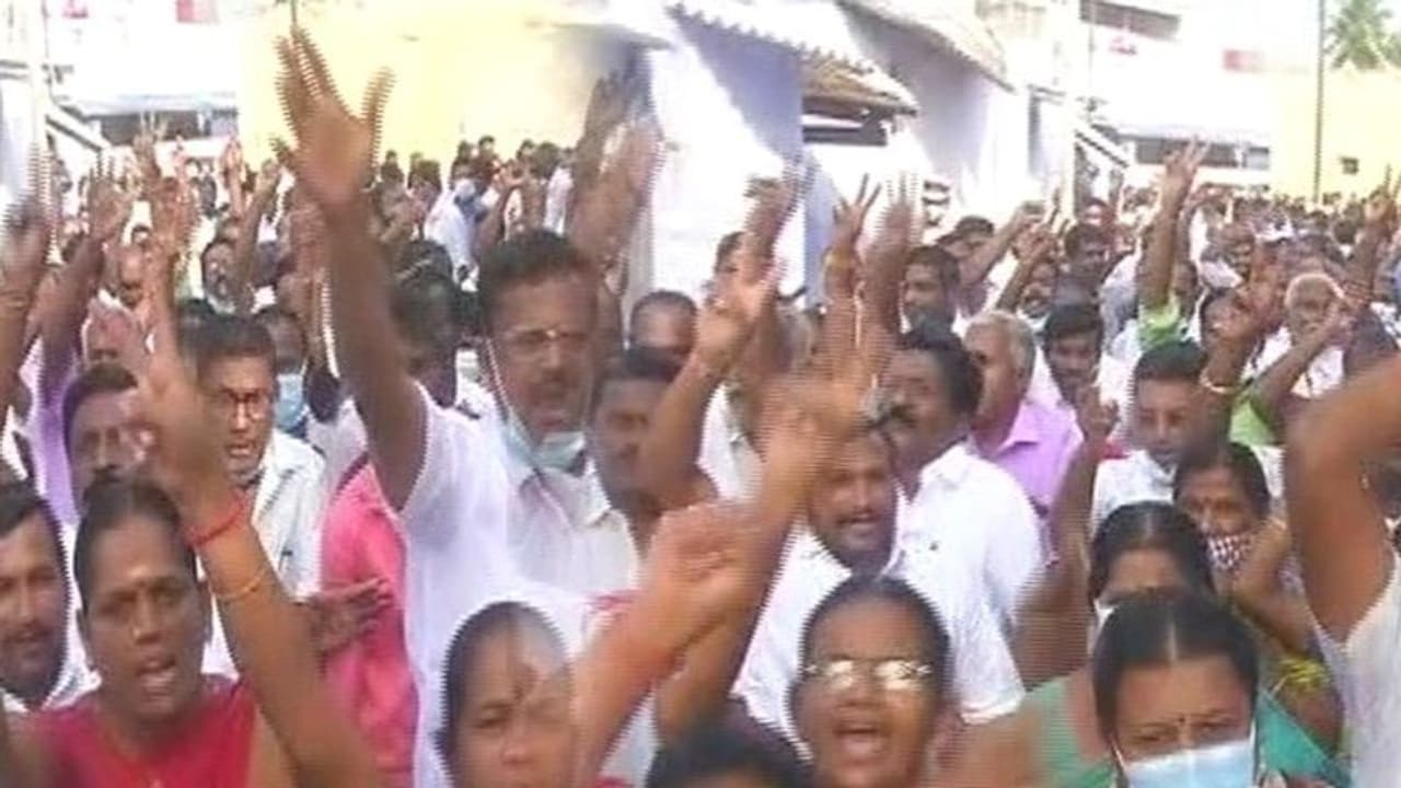 இன்று காலை 6 மணி அளவில் தொடங்கிய இந்த சோதனை, தமிழகம் முழுவதும் இன்றைய ஹாட் டாபிக் ஆக மாறியிருக்கிறது. முன்னாள் அமைச்சர் தங்கமணி வீட்டில் சோதனை என்று தெரிந்த அதிமுக தொண்டர்கள், தங்கமணி வீட்டின் முன்பு கூடி, கோஷங்களை எழுப்பி வருகின்றனர்.’பொய் வழக்கு போடாதே’, ‘மக்களை கண்டுகொள்ளாத விடியல் அரசே’ என்று கூறி போராட்டத்தில் ஈடுபட்டு வருகின்றனர்.’