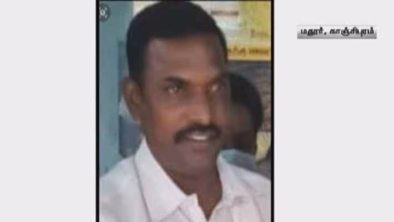 காஞ்சிபுரம் மாவட்டம் மதூரை சேர்ந்தவர் சண்முகம். திமுக விவசாய அணி ஒன்றியசெயலாளராகவும், முன்னாள் ஊராட்சி மன்ற தலைவராக இருந்தவர். இவர் தனியார் கல்குவாரி மற்றும் ஊழலுக்கு எதிராக குரல் கொடுத்து வந்துள்ளார். இந்நிலையில், வாலாஜாபாத்தில் உள்ள தனியார் கல்குவாரி அருகே இருசக்கர வாகனத்தில் சென்றுக்கொண்டிருந்த போது அங்கு மறைந்திருந்த மர்ம கும்பல் அவரை கம்பியால் தாக்கி அரிவாளால் வெட்டியுள்ளனர்.