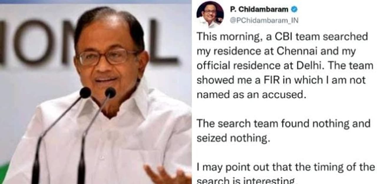 இந்த சோதனை தொடர்பாக கருத்து தெரிவித்த கார்த்தி சிதம்பரம், எத்தனை முறைதான் சோதனை நடத்துவீர்கள். இதுவரை எத்தனை முறை சோதனை நடந்தது என்பதை நானே மறந்துவிட்டேன்" என கார்த்தி சிதம்பரம் ட்வீட் செய்திருந்தார். இதனையடுத்து தற்போது முன்னாள் மத்திய அமைச்சர் ப,சிதம்பரம் வெளியிட்டுள்ள டுவிட்டர் பதிவில் இன்று காலை சென்னையில் உள்ள எனது இல்லத்திலும், டெல்லியில் உள்ள எனது அதிகாரப்பூர்வ இல்லத்திலும் சிபிஐ குழுவினர் சோதனை நடத்தினர். சிபிஐ குழு எனக்கு ஒரு எஃப்ஐஆர் காட்டியது, அதில் நான் குற்றம் சாட்டப்பட்டவனாக குறிப்பிடப்படவில்லை என தெரிவித்துள்ளார். மேலும் தேடுதல் குழு எதுவும் இதுவரை எதையும் கண்டுபிடிக்கவு்ப இல்லை கைப்பற்றவும் இல்லையென தெரிவித்துள்ளார். மேலும் தேடலின் நேரம் சுவாரஸ்யமானது என்பதை நான் சுட்டிக்காட்ட விரும்பவுதாகவும் ப.சிதம்பரம் தெரிவித்துள்ளார்.
